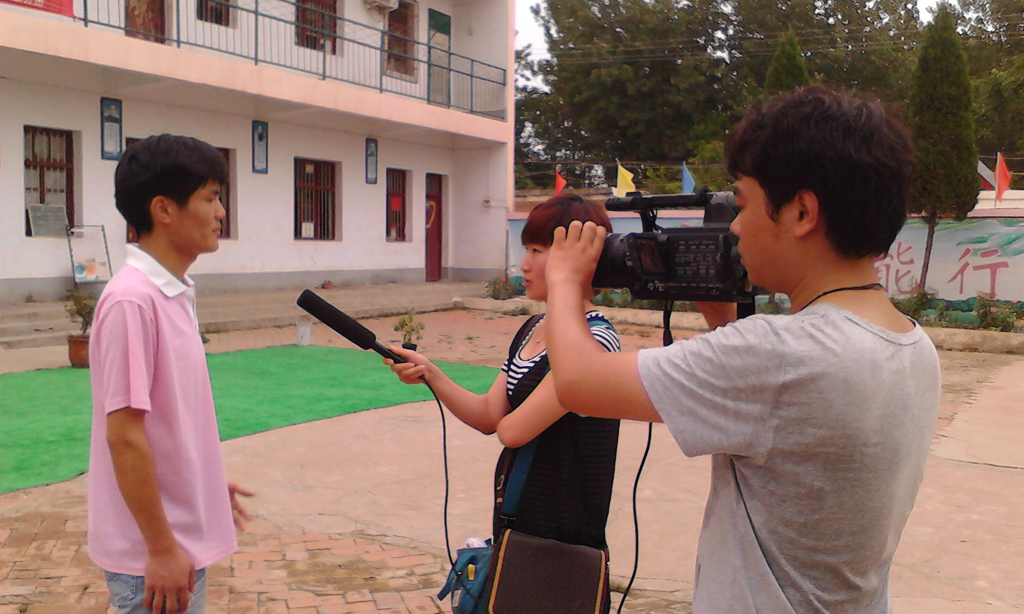 下午四点半,领导媒体记者们来到了新集小学,孩子们都以饱满的激情来迎接。同时,记者们也对他们“梦飞扬”支教团队进行了拍摄和采访。当记者得知,他们是响应学院的号召,突出他们的主题“心胸深含食品情,言行彰显农大神,实践激扬青春志,奋斗成就中国梦”。作为追梦人,他们行走在追梦的路上,记者还观看了他们的食品安全课。