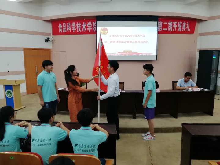 在雄壮嘹亮的《国歌》声中,此次大会正式拉开帷幕。李蓓蓓宣读《关于表彰探花 青马班优秀学员的决定》及学院第一期青马班培训班顺利结业学员名单。与会领导老师为优秀学员及毕业学员代表颁发荣誉证书、结业证书,并为结业的学员扣上了“青马培训第一粒扣子”。第一期青马班支书李达代表第一期青马班培训班汇报学习成果。随后,张世昌宣读了探花 青马班第二期学员名单,魏玮代表青马班辅导员为新一届青马班授旗。第二期培训班学员代表王超发言,并表示将坚持以马克思主义理论为指导思想,为成为一名真正的大学生骨干、一名合格的共产主义接班人而奋斗!接下来,魏玮发表重要讲话,她对顺利结业的学生表示祝贺,对第二期学员表示欢迎,并对新学员提出要求:忠于祖国,热爱人民,热爱自己;立鸿鹄志,做奋斗者和勤立行,做实干,勇于投身创造。随后,全体成员起立奏唱团歌。杨光希望同学们抓住机遇,认真学习,在培训中更有效、更全面地掌握所学习的知识与技能。
