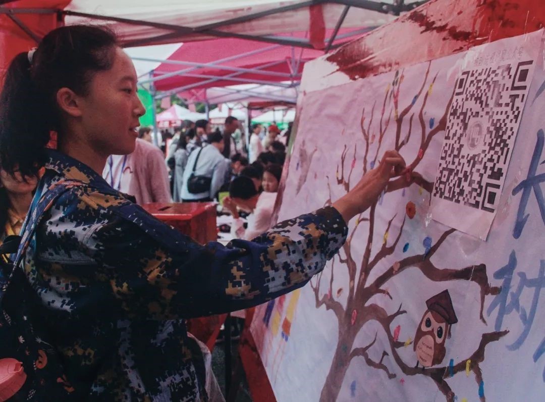 为欢迎新生入校,也因中秋临近,在场人员为新生办完报到手续后也为他们献上月饼表达中秋祝福。之后,新生拿到学院为他们特地准备的未来卡,在入校第一天写下自己未来一年的期待,投入时光信箱,一年后学院会为他们开启信箱,验证他们曾经的心愿。最后,他们在“指纹树”上留下对祖国和自己的美好祝愿,庆贺新中国成立七十周年,也庆贺自己成为探花