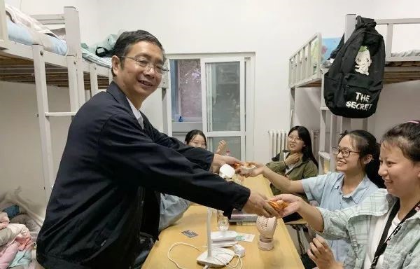 院党委书记杨喜洲对新同学的到来表示热烈欢迎,每到一处,都亲切询问同学们入学后的感受,鼓励大家积极适应新环境并对新生嘱托要注重学习,尽早制定大学生涯的规划,并为同学们送上月饼表达祝福。