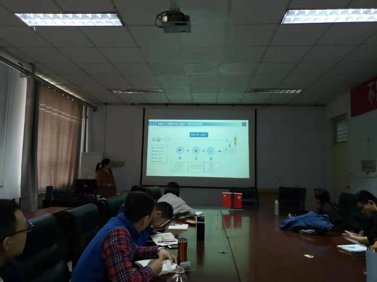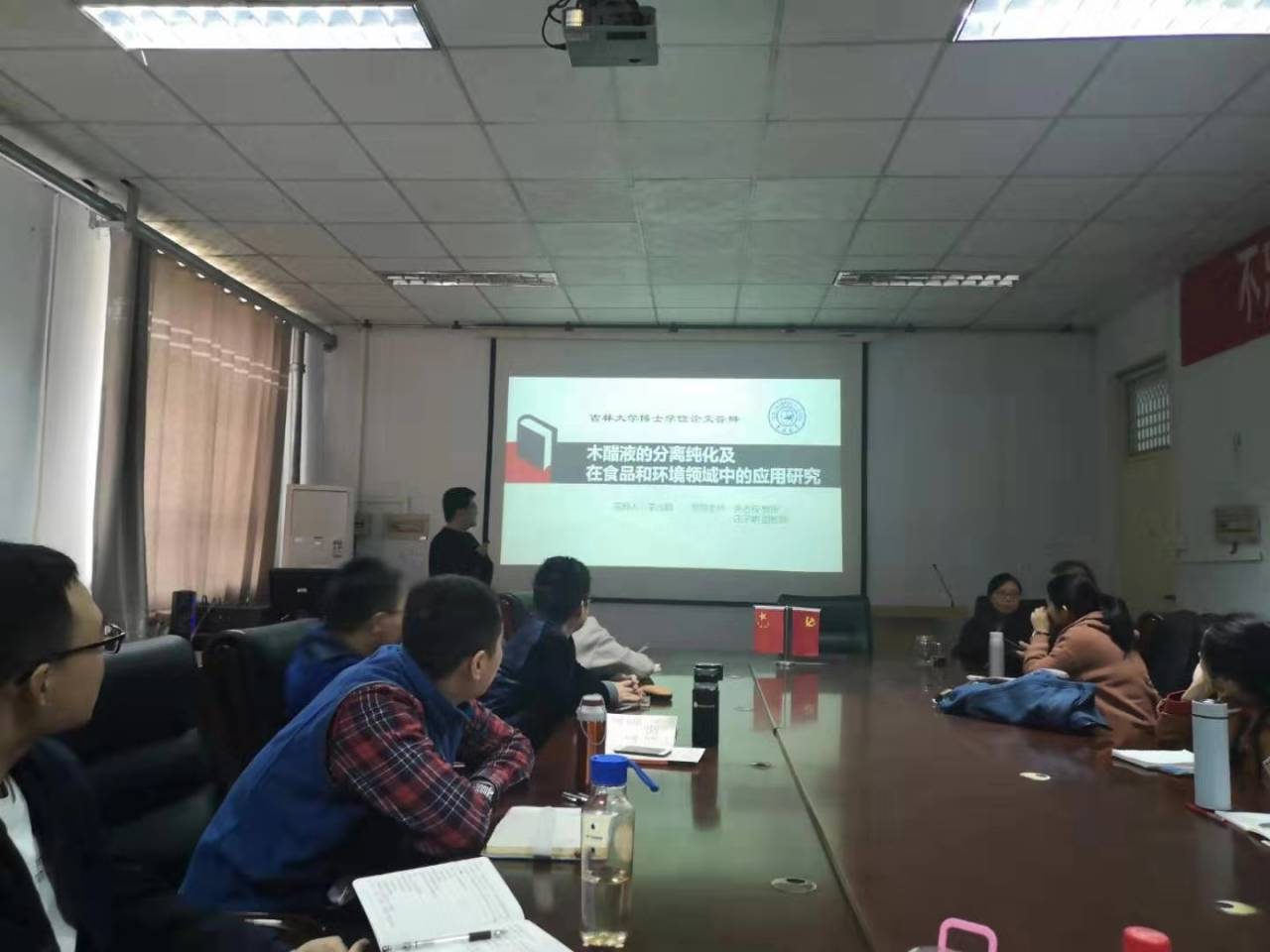 首先,闫爽老师就其博士论文《长双歧杆菌遗传多样性及其对结肠炎的干预作用》,为学生们详细讲述了长双歧杆菌的相关理论知识、对结肠炎的炎症改善以及肠道保护的作用;紧接着,程永霞老师就其博士论文《酶法制备富含低聚果糖龙眼汁及其功能性研究》,为学生们讲述甜度较高的龙眼汁中如何用酶法制备成低聚果糖并研究其功能功能特性;然后,马艳老师就其博士论文《GABA对NaCl胁迫下大麦芽苗酚酸合成的信号传导机理研究》,为学生们讲述有关大麦芽苗的机理研究;最后,李占超老师就其博士论文《木醋液的分离纯化及在食品和环境领域中的应用研究》详细讲述有关木醋液的提纯及有关食品应用方面的研究,并与到会的老师和同学们展开了激烈的讨论。