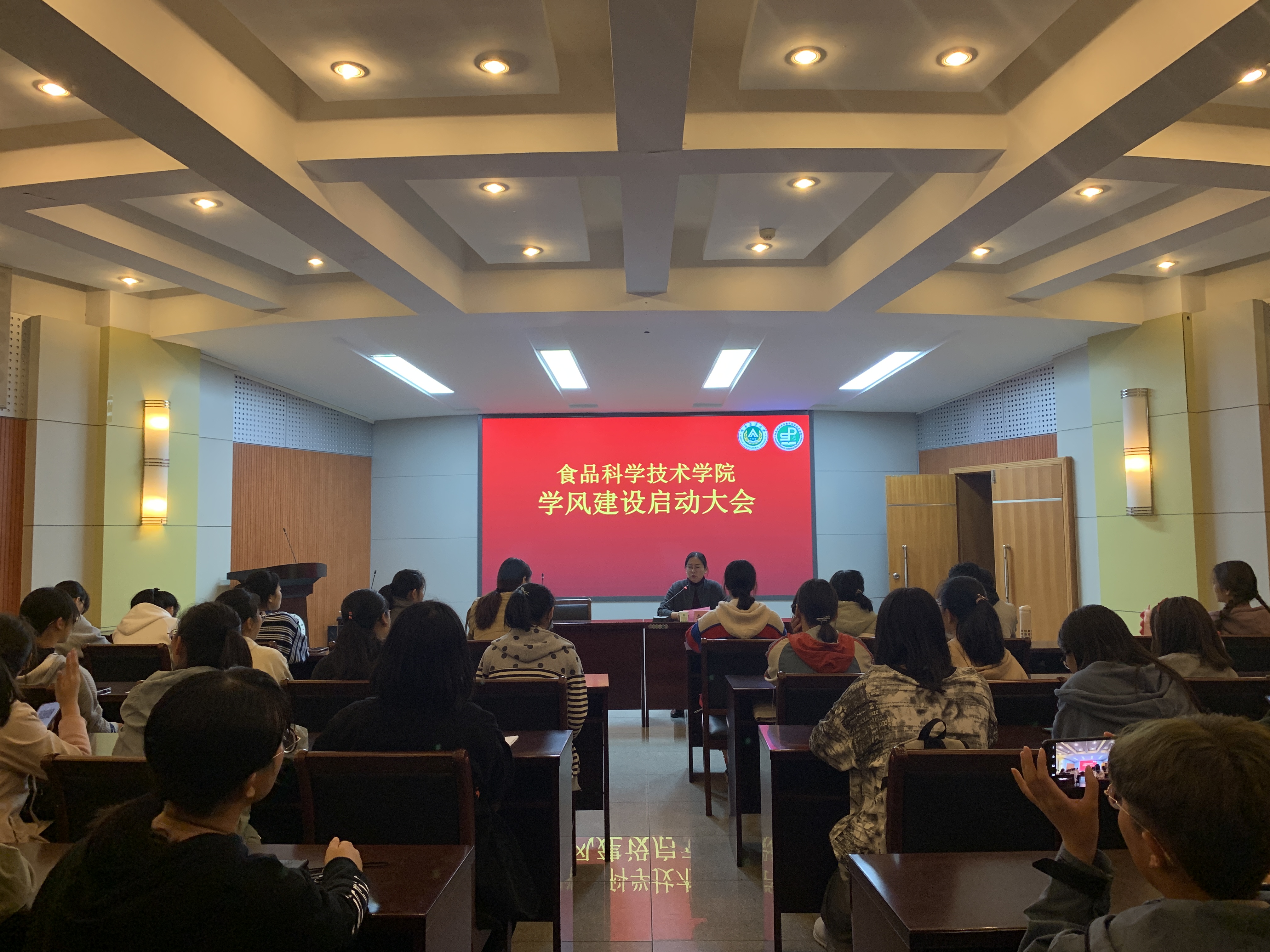 于文化路校区第一报告厅召开学风建设启动大会,院党委副书记李蓓蓓出席会议,18、19、20级学生骨干参加会议。