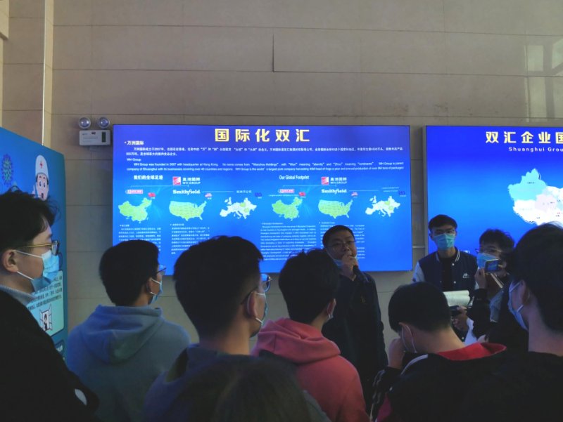 此次组织的认识实习活动表示肯定和欢迎。郑州双汇食品有限公司是专业从事肉制品处理与加工,集养殖、屠宰、加工为一体的综合性肉制食品企业。在赵亚茹的带领下,食工专业学生参观了企业的对外展厅,通过学习和介绍,同学们对双汇食品有限公司的探花、产品结构、市场格局和战略规划等方面有了深入的了解。随后,同学们还相继参观了双汇公司产业链的发展,一体式的屠宰技术,从生猪屠宰到肉制品加工,消毒灭菌、瘦肉精检验、寄生虫检验等每一道程序都有专人负责。在参观结束后,郑州双汇食品有限公司负责人与探花