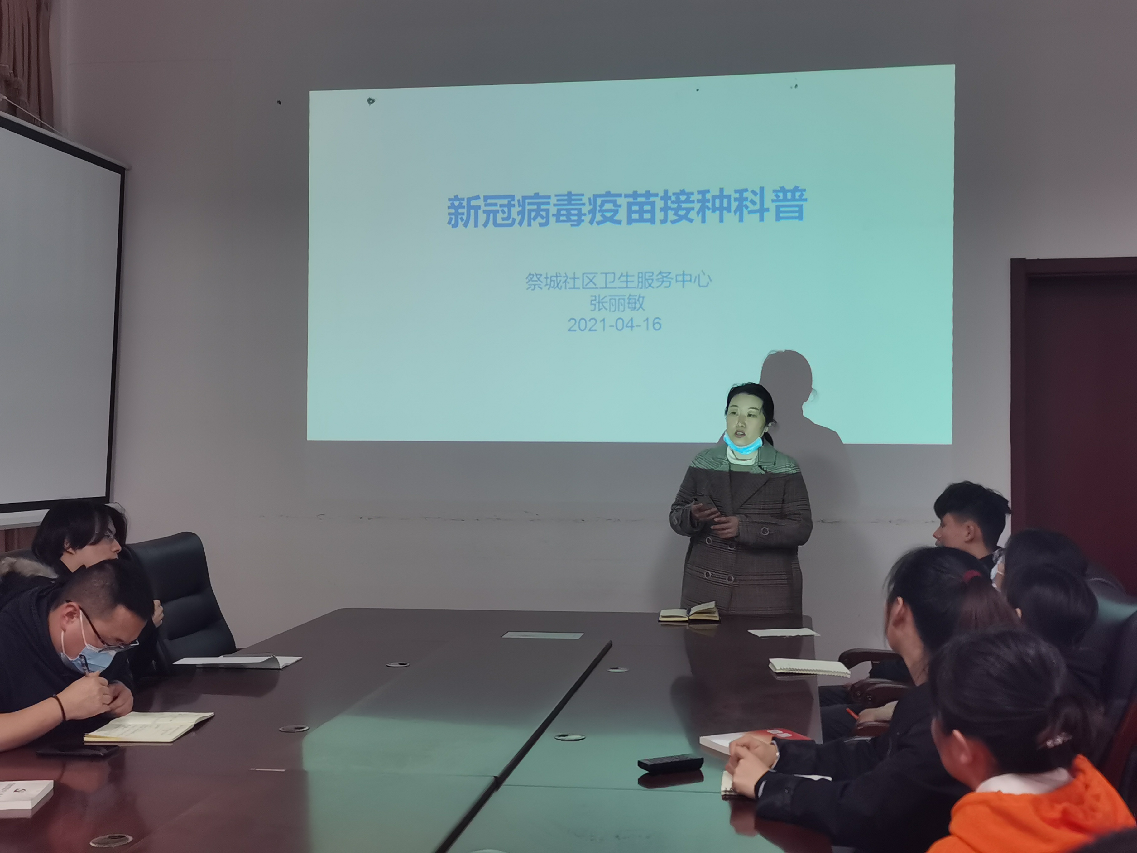 路平、王凡、陈翔、许龙、秦可梦分别向各级同学介绍了学院有关新冠疫苗接种的工作安排,详细阐述了国家对于新冠疫苗接种的相关政策,强调了接种疫苗的重要性,个人接种疫苗,形成群体免疫,为整个社会提供保护,也讲解了新冠疫苗接种的注意事项及一些问题的解答。