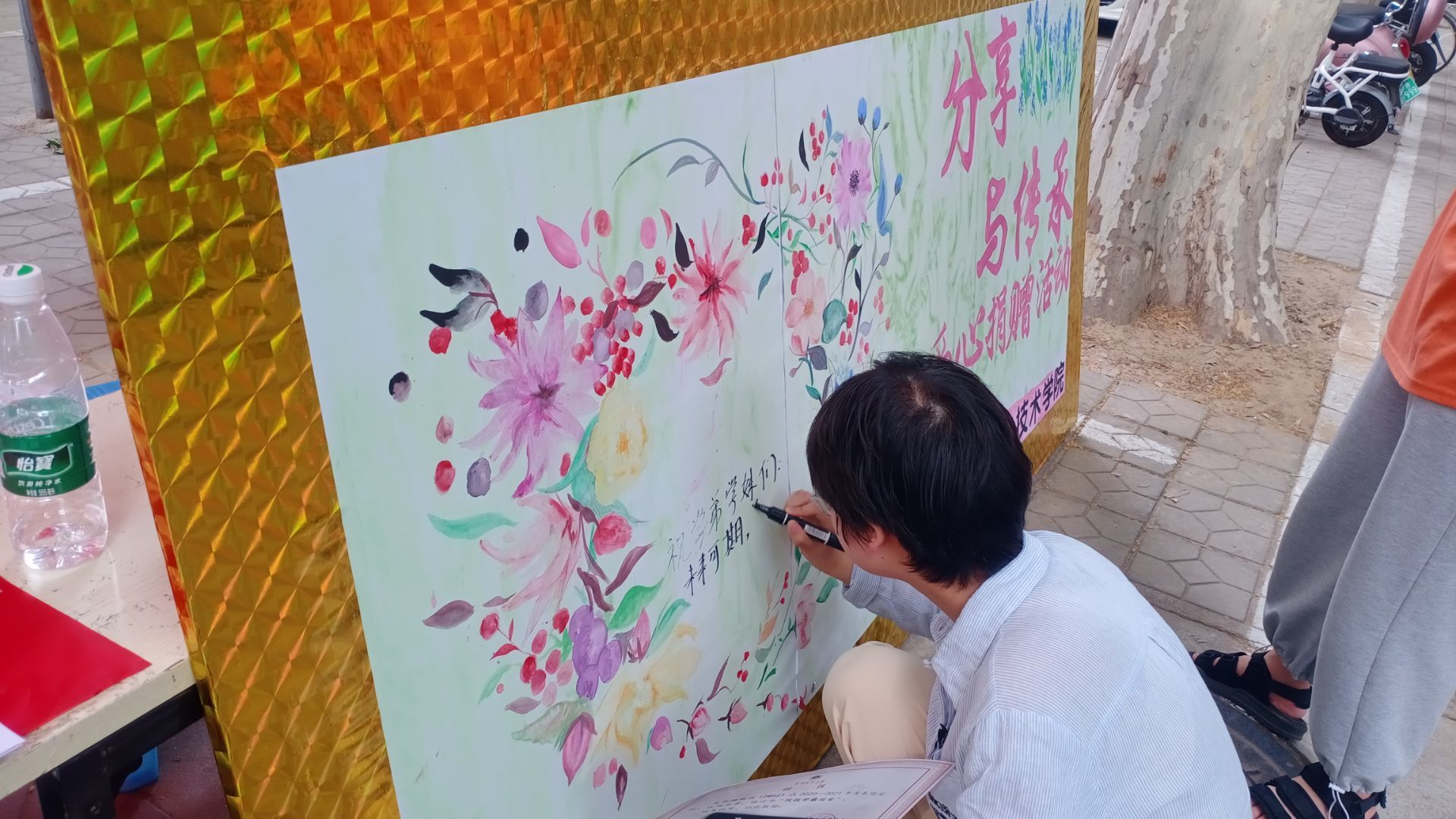 活动过程中,志愿者们提前准备好桌子,登记册,麻袋等物品等待同学们前来捐赠。随着捐赠者陆续到来,志愿者们对捐赠物进行整理,同时毕业生们也为学弟学妹们写下美好的祝福。志愿者们向捐赠者们表示感谢,并对他们送出美好的祝愿
