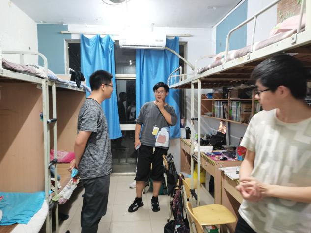 团委书记路平、团委副书记陈翔、团委老师张金龙、许龙深入学生宿舍了解学生生活情况,并向同学们强调离校安全相关事宜,表达学院对学生浓浓的关心。