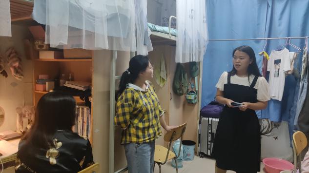 在本次走访中,学院领导老师针对离校安全与学生展开交流,提醒同学们离校前注意宿舍门窗,水电以及个人财产等基础安全,并强调离校过程要注意个人防护,以确保自身安全。另一方面在学生宿舍中,探花
