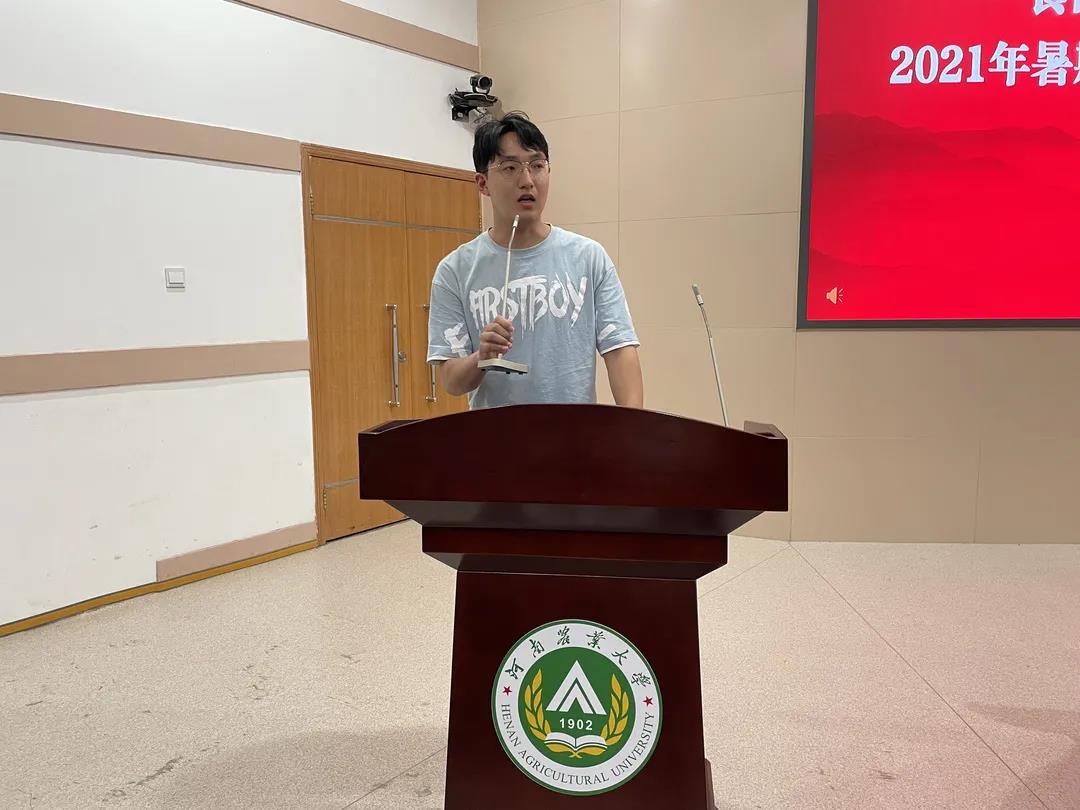 路平向同学们介绍了此次活动的主题、类别、形式、原则等内容,并叮嘱同学们在社会实践活动中,要树立安全第一的意识,坚决落实疫情防控的工作要求,确保暑期社会实践活动安全、有序开展。同时她表示,希望同学们通过此次活动有所获、有所得。2017级食品科学与工程一班张伟峰同学结合自己的社会实践经历讲述了社会实践活动中的注意事项。