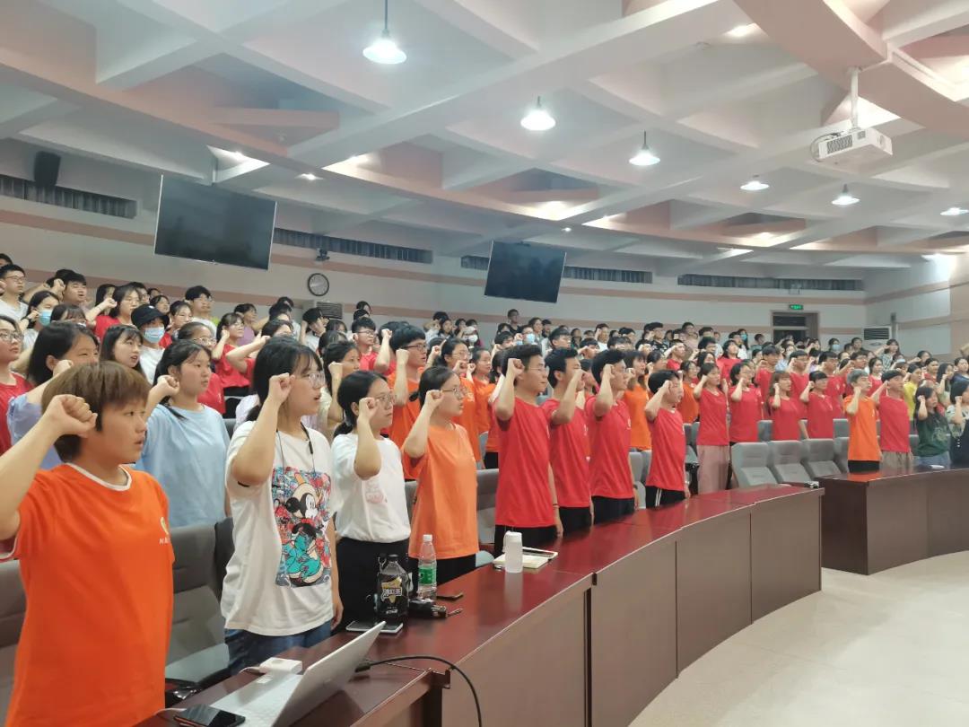 学生代表2019级食品科学与工程一班郑一晨带领同学们宣誓,标志着社会实践活动正式启动。