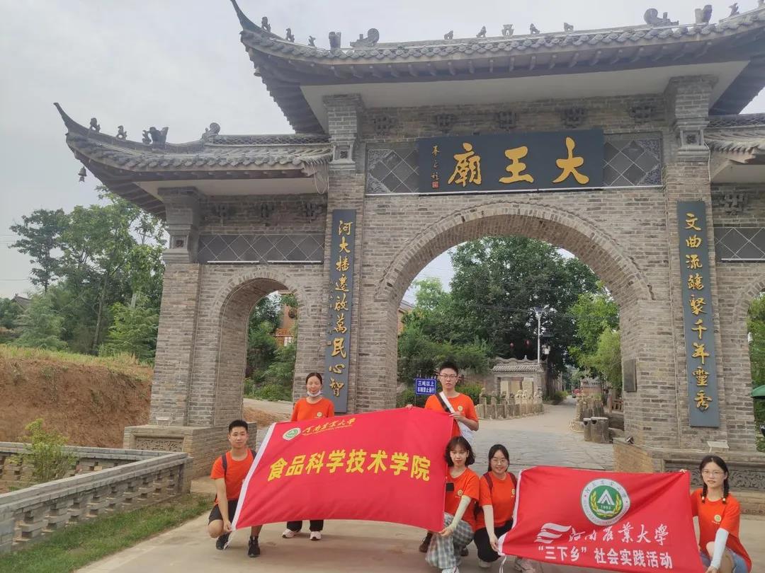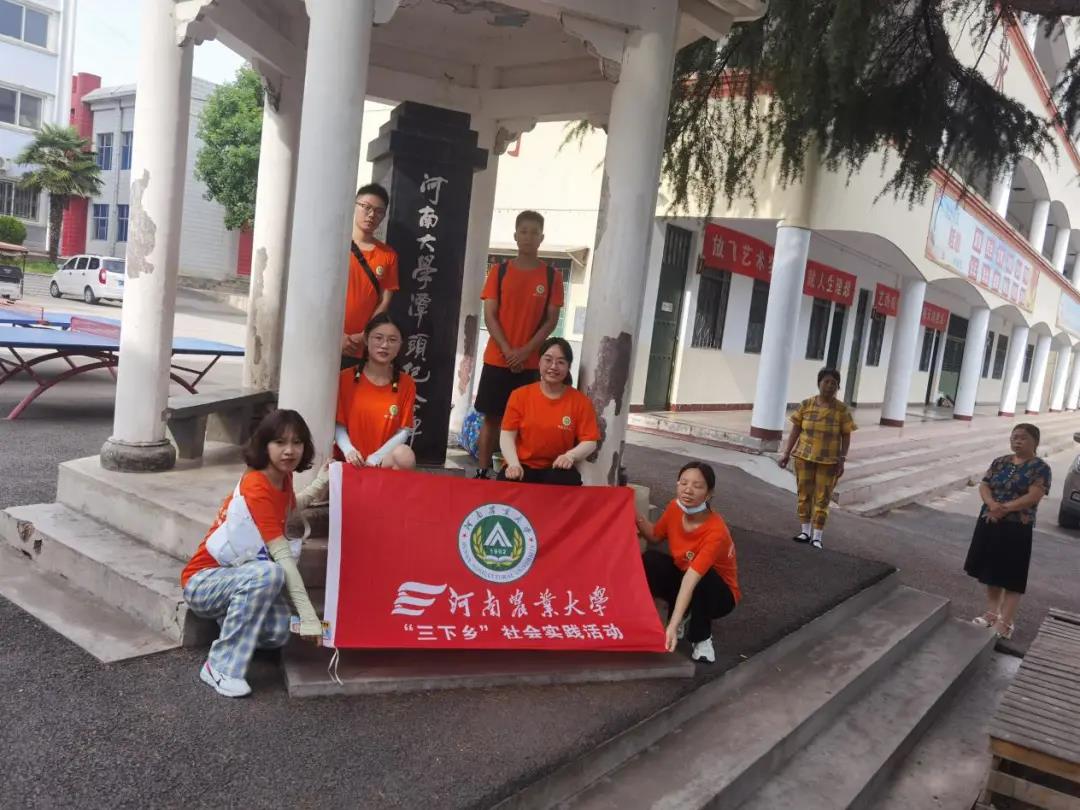 随后,团队成员来到大王庙村,参观了国立河南大学农学院的办学遗址和试验田,重温了国立河南大学潭头农学院的发展变化,瞻仰了当时农学院教授照片,知晓了农学院教授的各种成就。通过询问和观察,我们团队发现大王庙村至今仍用自己朴素的方式,表达着世代山区人民对高等教育的期盼和对“先生”传道授业的尊重。参观结束后,团队成员在门口合影留念。