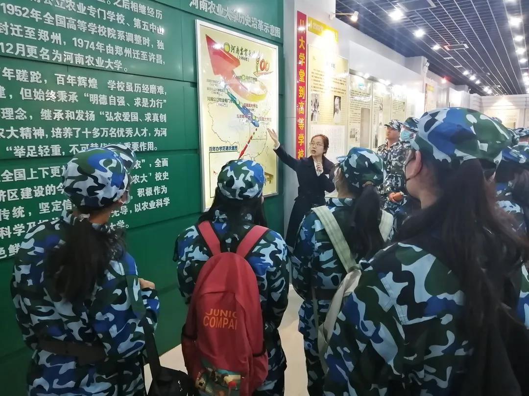 助班带领新生前往校史馆参观。校史馆工作人员和志愿讲解员饱含着对农大的热爱,配合丰富的展板和古朴的实物,声情并茂地为同学们讲解了我校从河南大学堂到探花