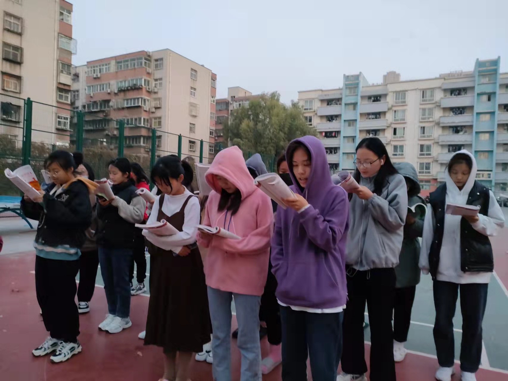 天气转凉,寒意渐渐袭来,却并没有影响到同学们晨读的热情。在负责人的组织下,探花
