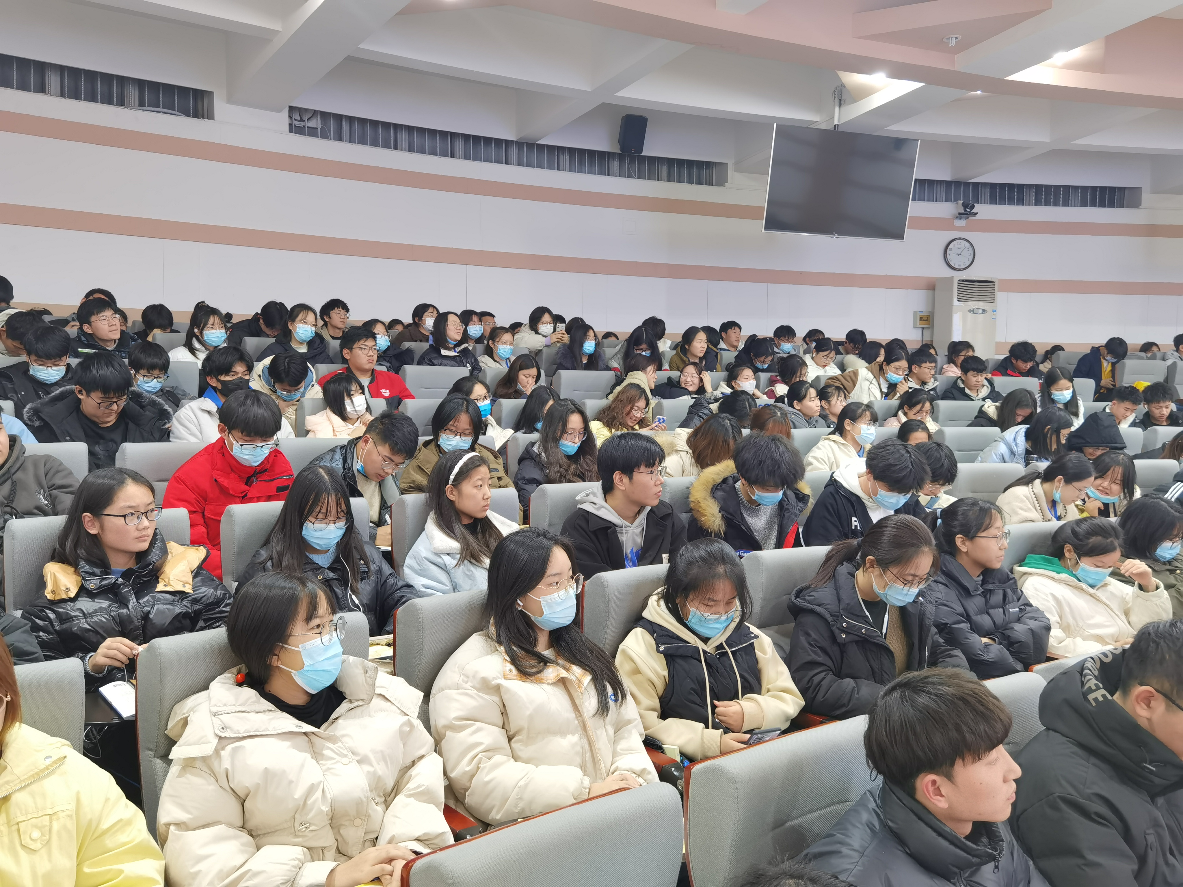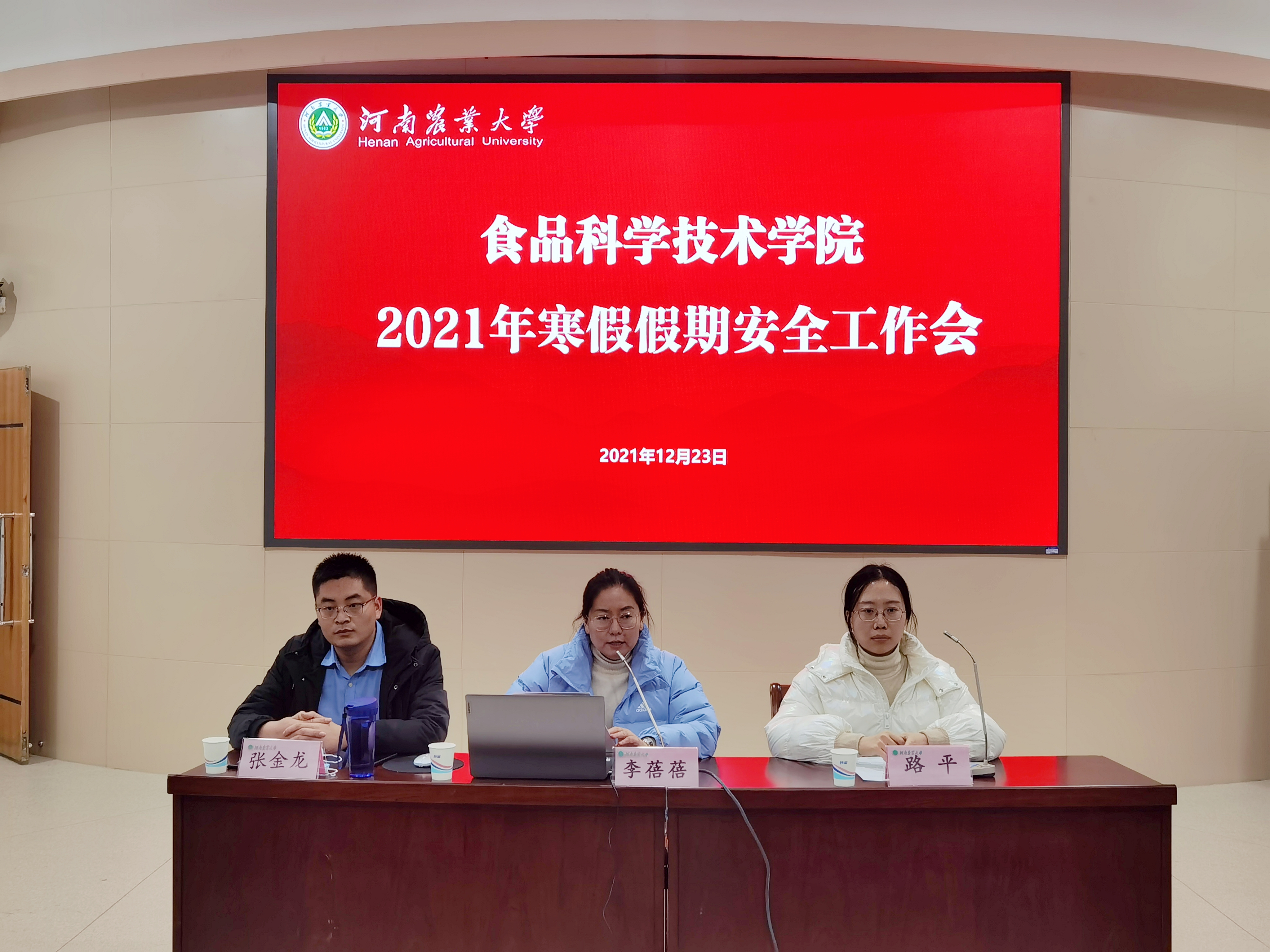 于文化路校区第一报告厅召开2021年寒假假期安全工作会。院党委副书记李蓓蓓、院团委书记路平、院辅导员张金龙出席会议,21级全体学生参加会议。