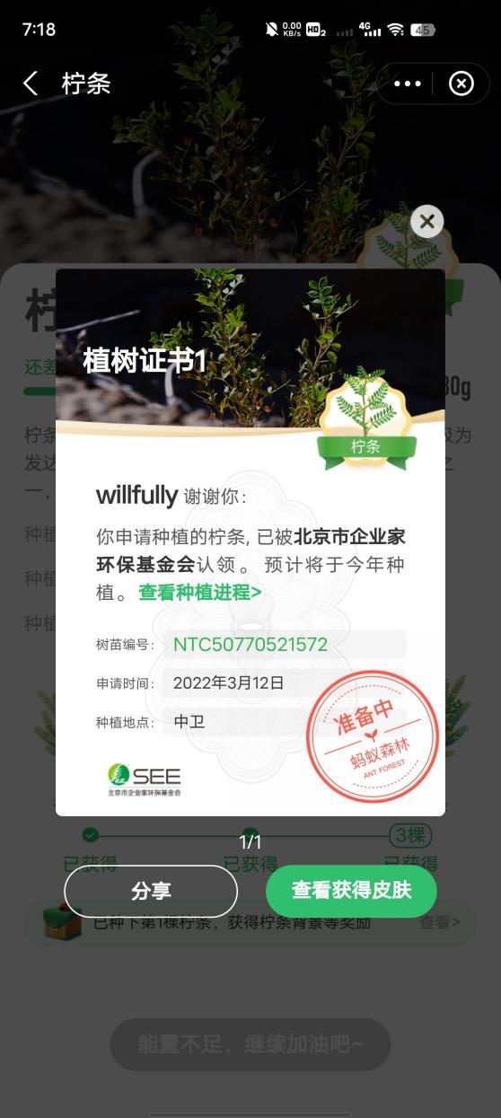 组织开展了线上植树活动,学院部分同学参加。