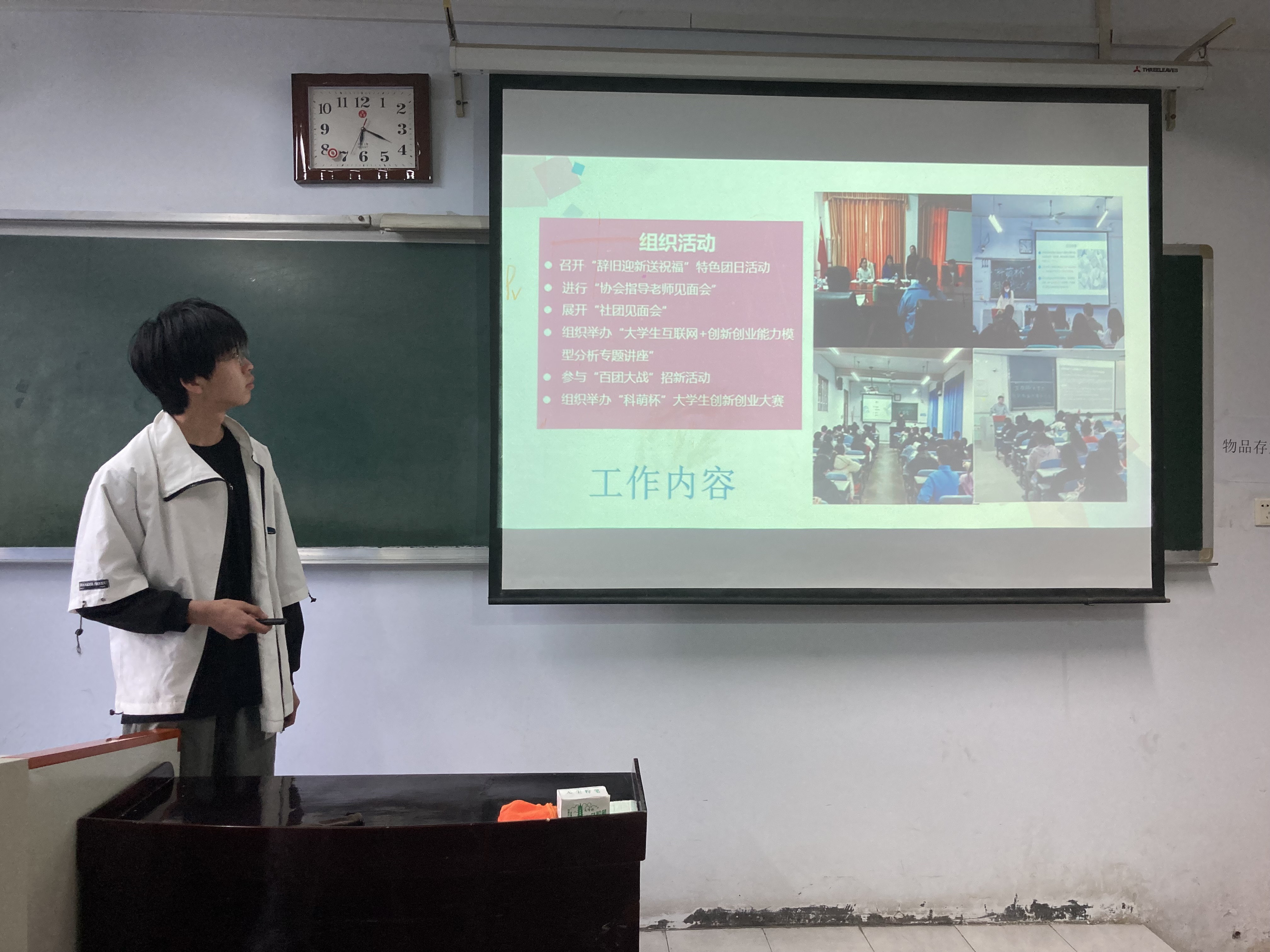 同学们分别围绕基层组织建设、思想引领、创新创业、校园文化、社会实践、特色活动等主题进行构思,结合自身实际和庆祝建团100周年的背景,设计了内容充实、贴近青年、形式多样的工作项目。最终,参与大赛的项目采用PPT的形式进行现场展示,同学们滔滔不绝地讲解项目内容,便于大家更好的了解。他们精彩的讲解充分展现出探花