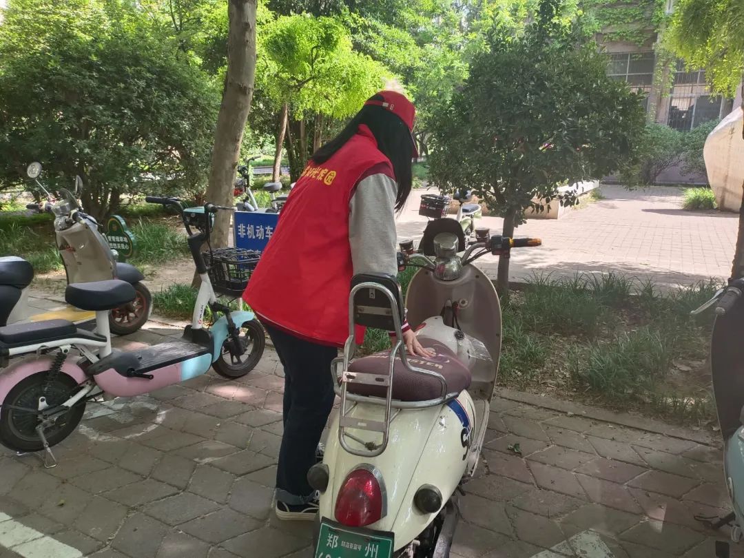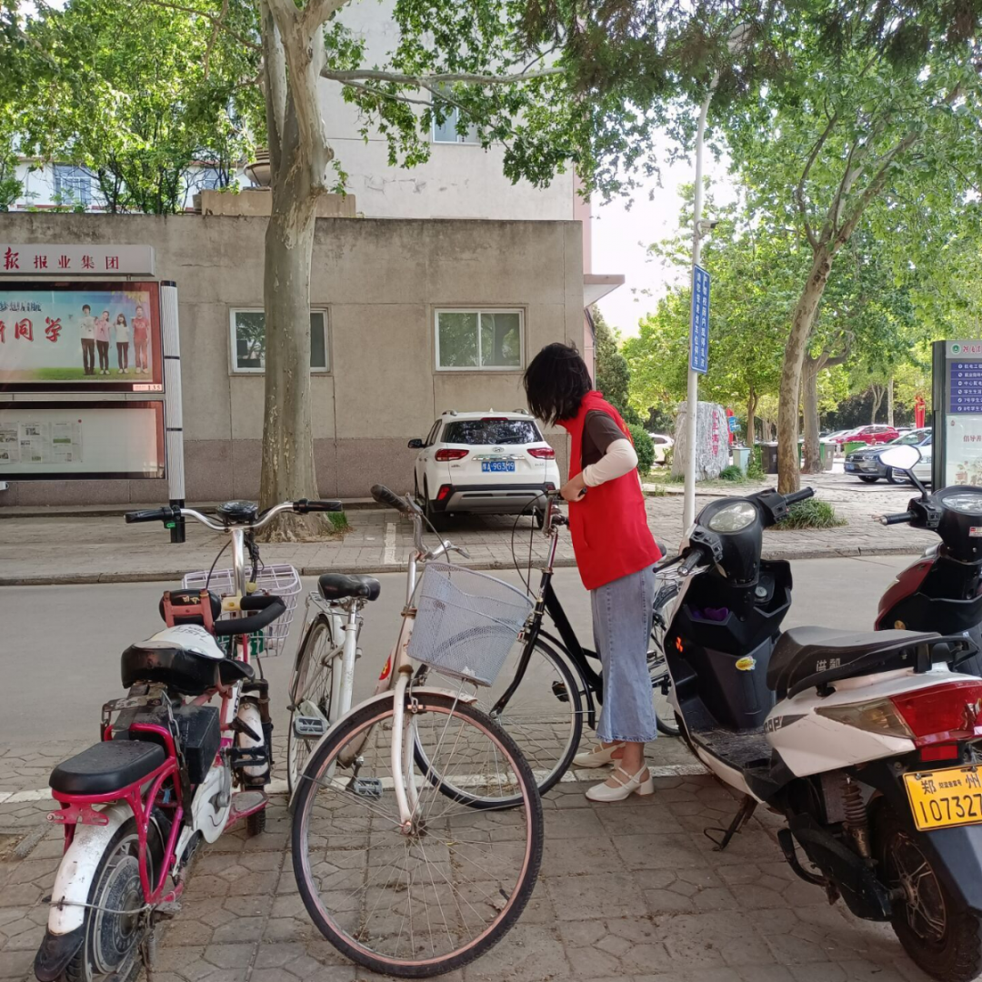 志愿者对乱停放的车辆进行集中摆放整理。
