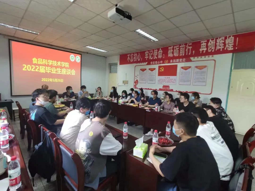 于文化路校区17号楼405召开2022届毕业生座谈会,院党委书记赵改名、院长黄现青、院党委副书记李蓓蓓、副院长张剑、各系(室)负责人出席会议,探花