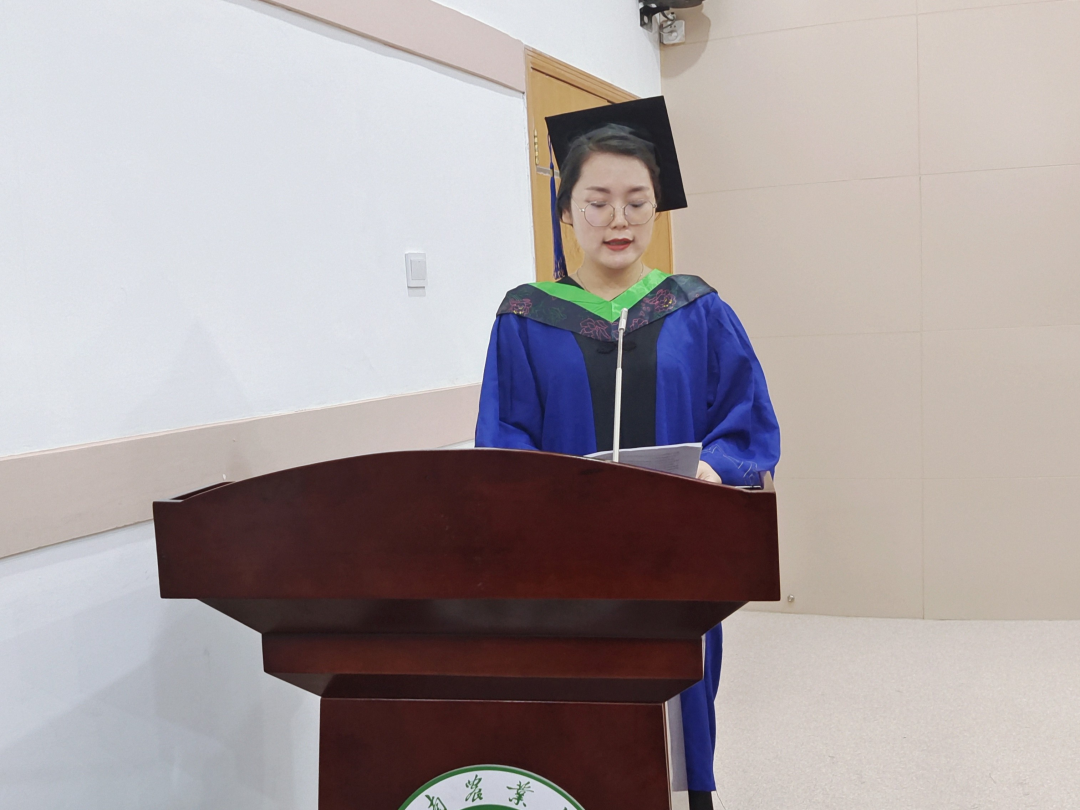 研究生毕业生代表秦可梦,本科生毕业生代表马如想分别发言。她们回顾了入学来的点点滴滴,表达了对学院、师长的眷恋和感激之情,同时抒发了对未来怀揣新梦想,踏上新征程的无限憧憬和向往。