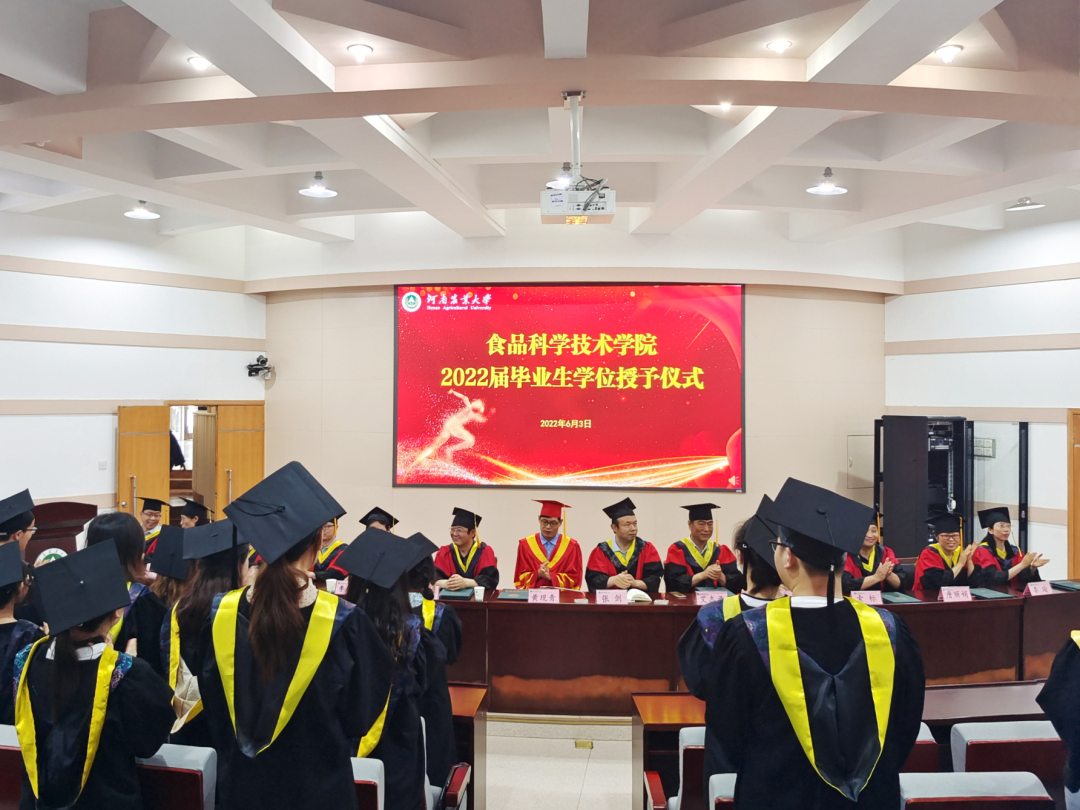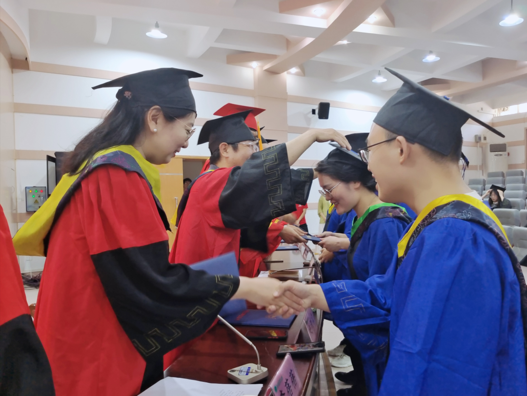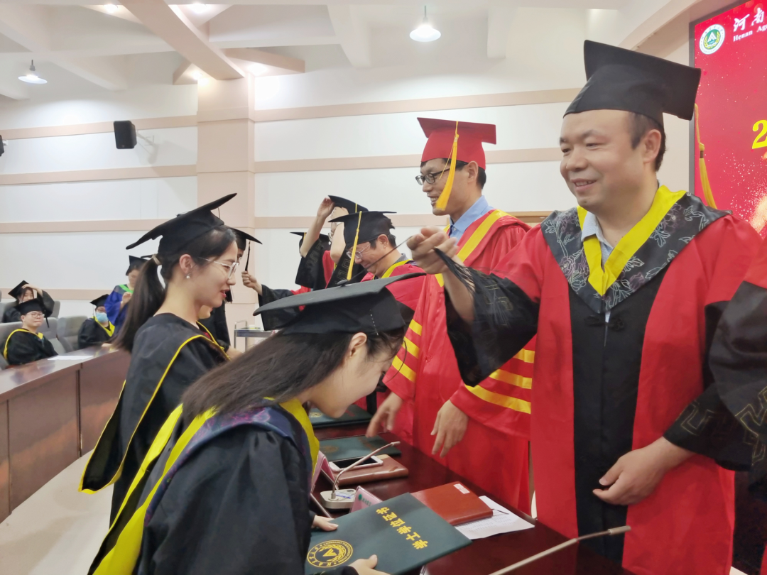 院学位委员会委员依次为2022届毕业研究生和本科生授予学位,扶正流苏,寄语祝贺并合影留念。