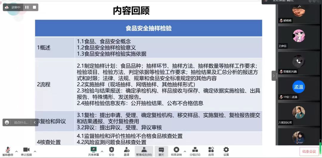 此次生产实习线上培训会,帮助同学们进一步了解了食品检验与抽检理论和实践方面的知识,提高了同学们的综合能力,为今后的就业打下坚实基础,同时,有利于探花
