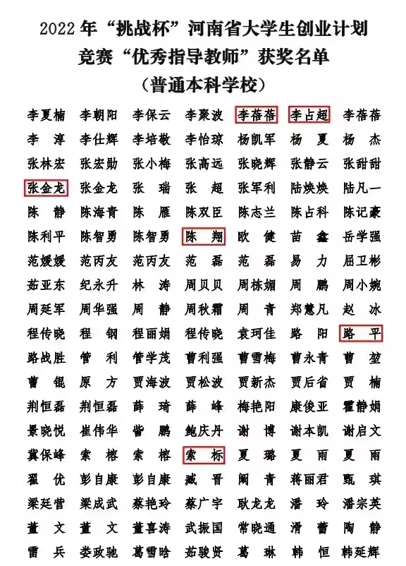 (通讯员 刘晓梦)近日,2022年“挑战杯”河南省大学生创业计划竞赛及河南省教育厅等联合主办的“互联网+”大学生创新创业大赛已落下帷幕。经省级复赛、省级终审决赛,探花