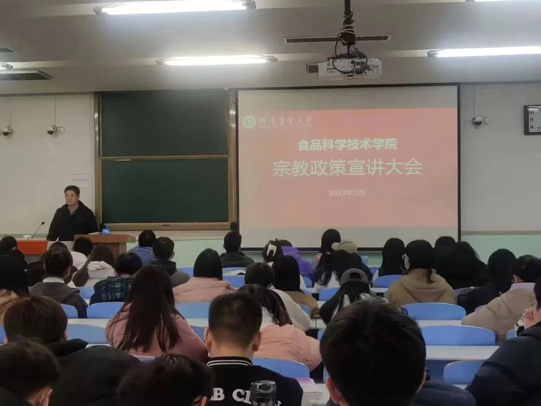 于文化路校区工程楼召开宗教政策宣讲大会,院团委书记路平、院团委副书记陈翔、院辅导员张金龙出席会议,探花