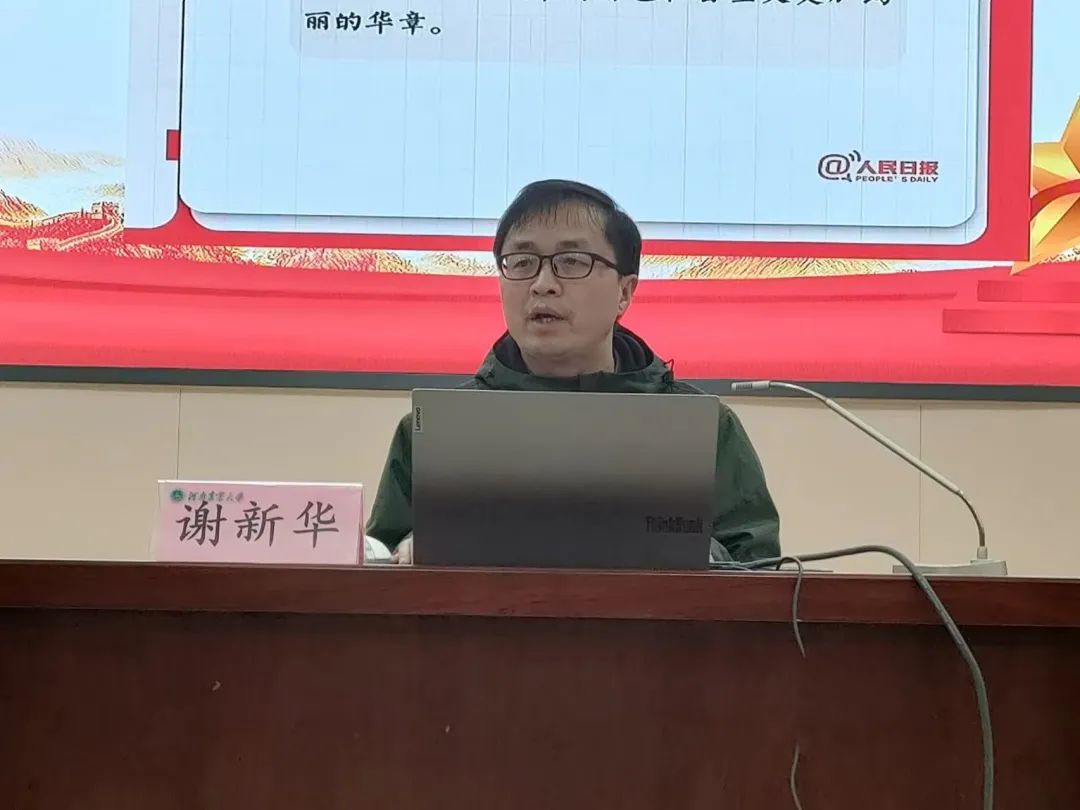 谢新华从同学们的日常学习与当前社会需求中入手,强调了学习党的二十大精神的重要性。他带领同学们一同回顾中国过去五年的工作和新时代十年的伟大变革,详细阐述了新时代新征程中国共产党的使命任务,向同学们充分展示了我国各方面建设工作的巨大成就,希望同学们从党的历史中汲取力量,永怀初心,砥砺前行,努力学习专业知识,不负时代和人民,矢志不渝的为实现中华民族伟大复兴贡献自己的青春力量。