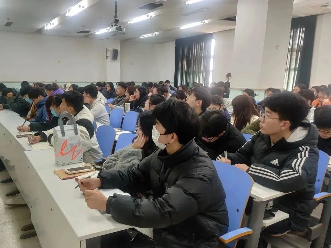 张金龙向同学们介绍了创新创业大赛的类型、时间、赛制以及注意事项。他表示,赛道不同,侧重点不同,同学们在报名参赛时要仔细阅读文件,明确创新方向,选择正确的赛道。随后,他以往届优秀团队为事例强调了经验累积的重要性,希望同学们坚持“以赛代练、以赛促训、突出技能、展示风采”的理念,踊跃参加,通过参赛提高自己的创新意识和综合能力,充实大学生活。