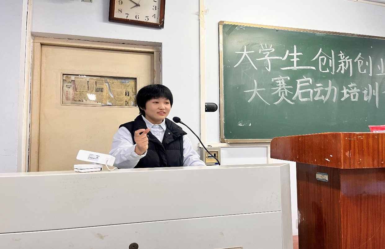 于文化路校区工程楼102开展大学生创新创业大赛启动培训会。本次培训会由19级优秀学生代表朱亚威、梁梦莹主讲,探花