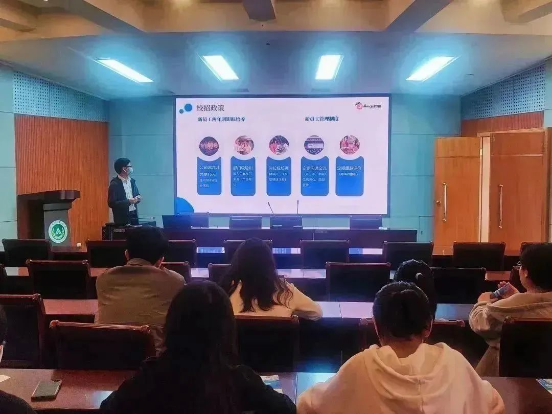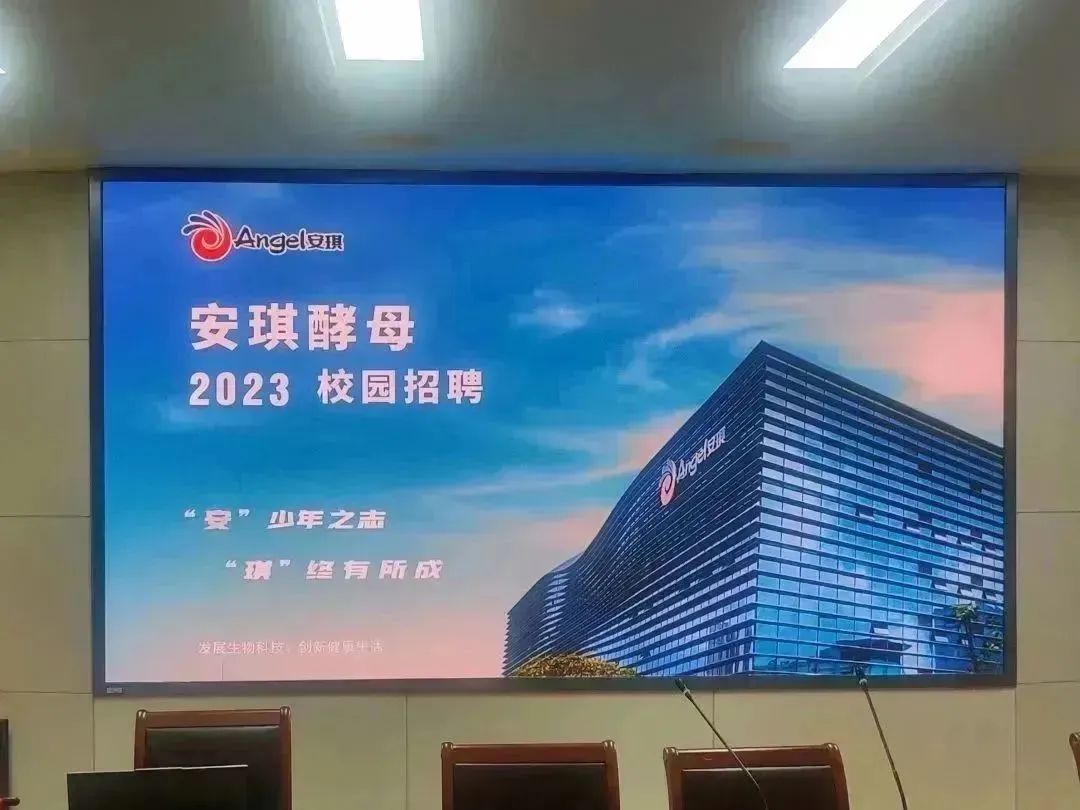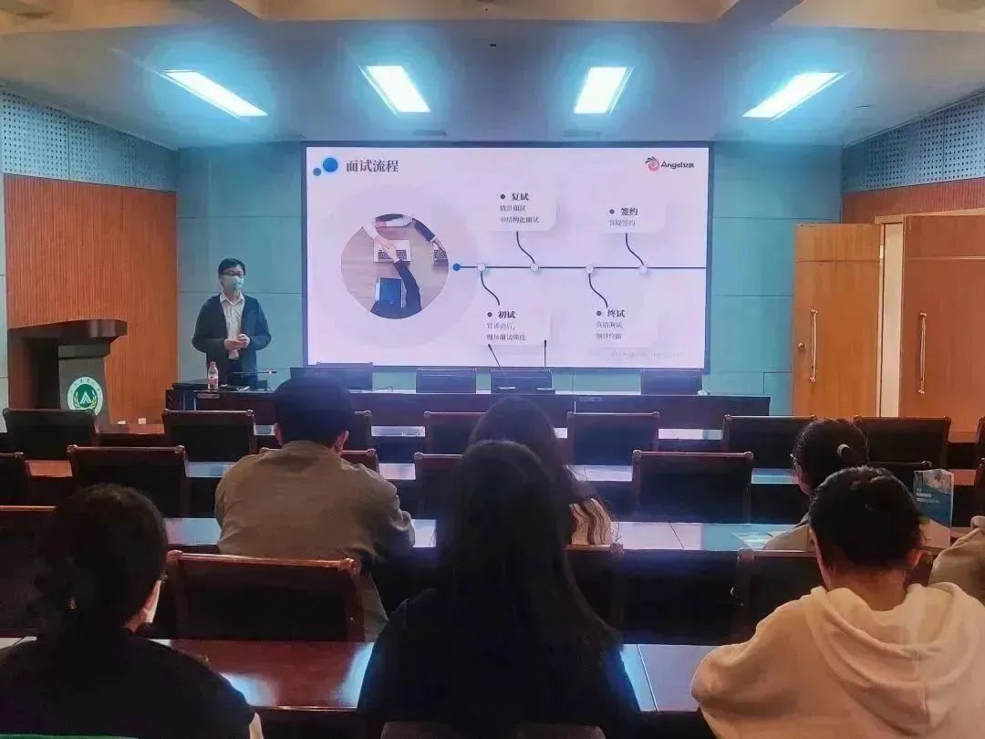 于文化路校区一百人报告厅召开安琪酵母2023校园招聘宣讲会,安琪酵母集团人力资源高级主管梁威进行招聘宣讲,探花