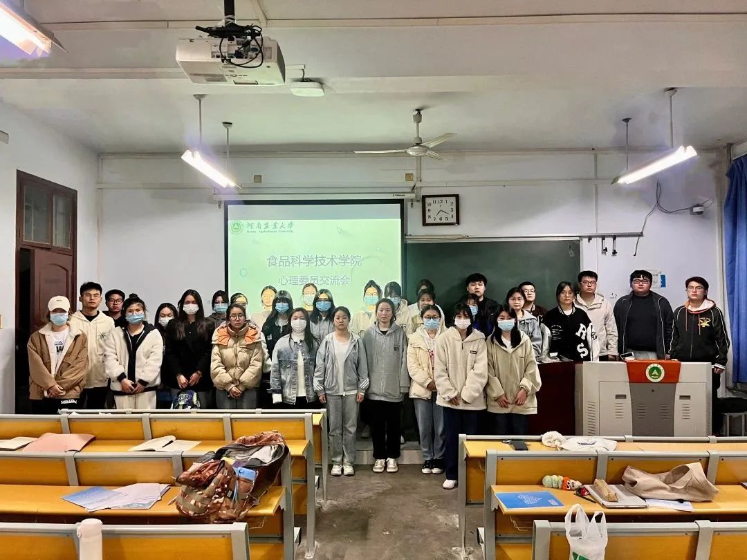 21级食工三班蔡语铮为各班心理委员发放调查问卷,同学们积极认真填写,同时,针对相关工作问题展开交流讨论。