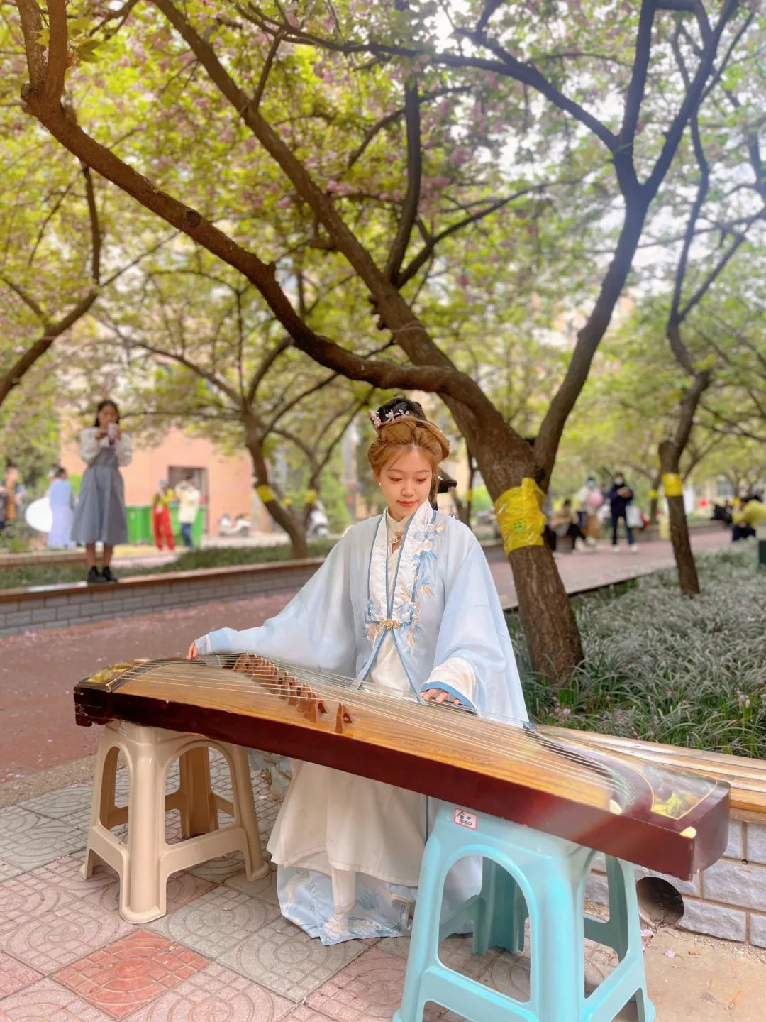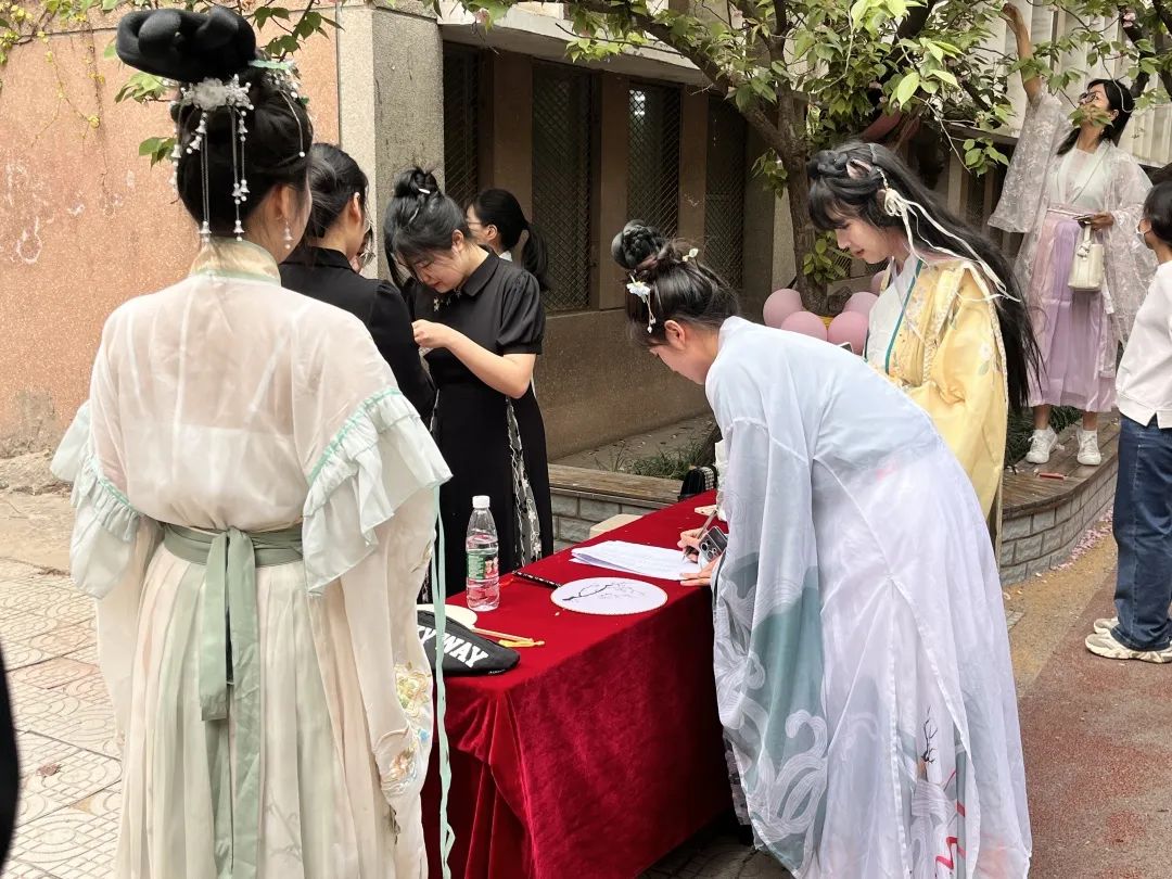 现场还设有拍照打卡区,为同学们提供汉服可试穿拍照,还有古筝、笛子等古典拍摄道具。同学们纷纷表示领略了汉服之美,感受了传统文化的魅力。