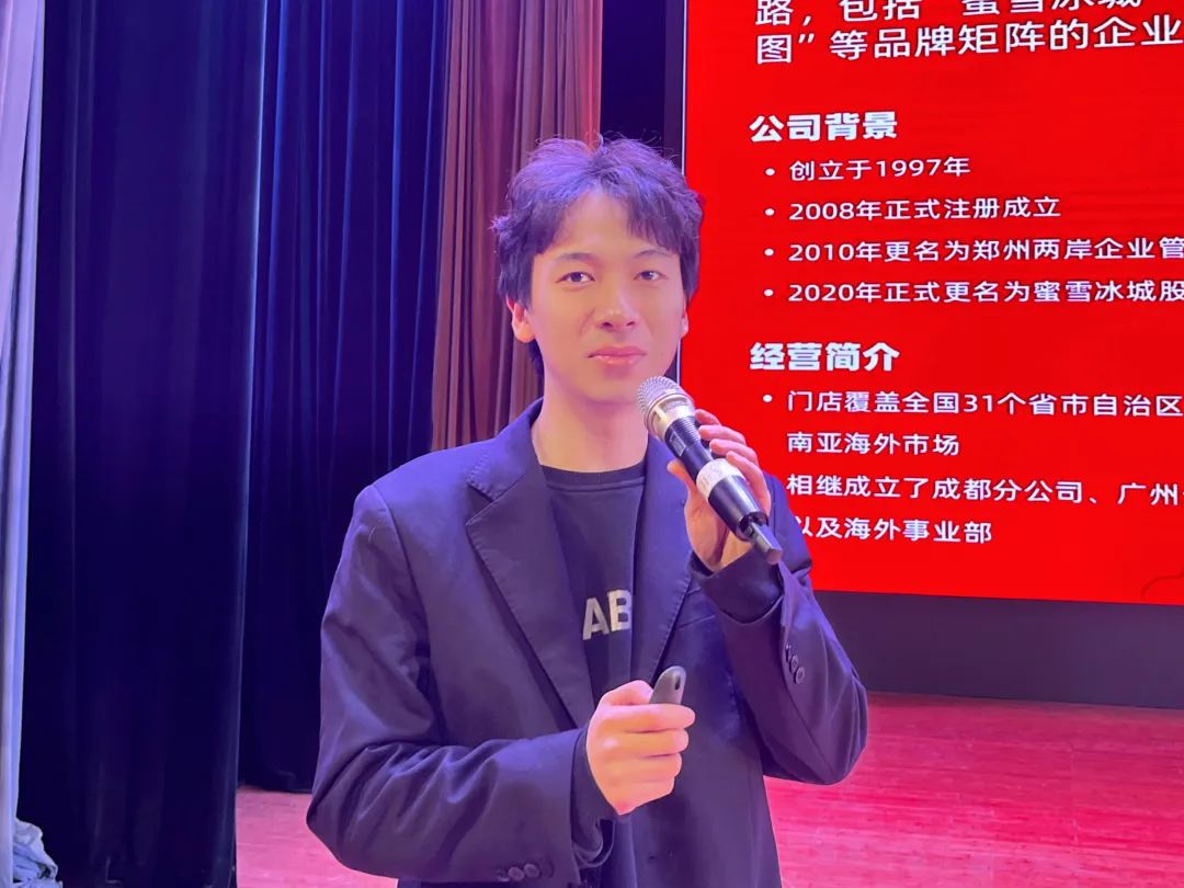 会议伊始,陈冠龙通过播放视频宣传片简单讲述了蜜雪冰城的公司理念和探花。他从管理运营、生产研发、仓储物流、品牌历程、全球化特色布局五个方面向同学们详细介绍公司的发展战略和发展方向。他强调,蜜雪冰城是有温度的大家庭,始终秉持着一颗助人为乐的公益心,致力于带动偏远地区的农业发展,参与抗洪救灾、灾后重建、慰问特殊家庭等公益活动,同时,蜜雪冰城注重人才的培养,员工会进行多层次的培训项目,包括线上培训、名企参观、全员运动会、趣旅游等。最后,他表示,英雄不论出处,希望同学们能结合自身,做好职业规划。