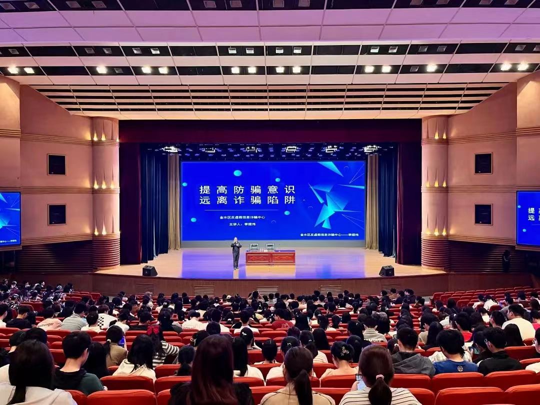 特邀金水区反虚假信息诈骗中心民警李煜伟于文化路校区千人大礼堂开展“提高防骗意识,远离诈骗陷阱”主题教育讲座,院党委副书记李蓓蓓和学生代表参加,此次讲座由博士辅导员补彤主持。