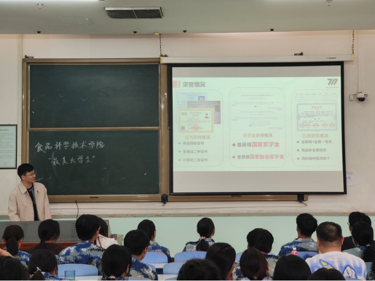 经过前期宣传动员,此次共有23名同学参与“最美大学生”评选。同学们分别从学习成绩、志愿活动、社会实践、未来规划等方面向大家分享自己入学以来的成长收获。他们有的参加过三下乡社会实践活动、有的参加过家乡或学校的防疫志愿者、有的在自己的专业里取得优异成绩,同学们通过分享,充分展示了探花