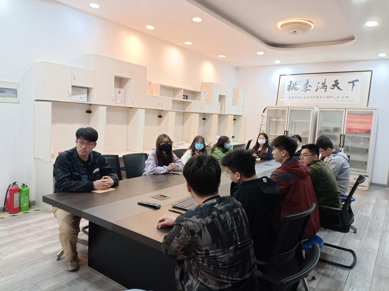 其次研会副主席司羽平对近期工作进行总结。司羽平同学表示研究生会同学们配合默契,环环相扣,吃苦耐劳,活动顺利开展,活动参与度高,各班级认真参与,团结一心,增加了各班级凝聚力。他也提到了工作流程中需要改进的地方,一是研究生会消息回复不及时,导致工作开展不够快,二是请假制度不够完善,并希望同学们在未来工作中继续努力。