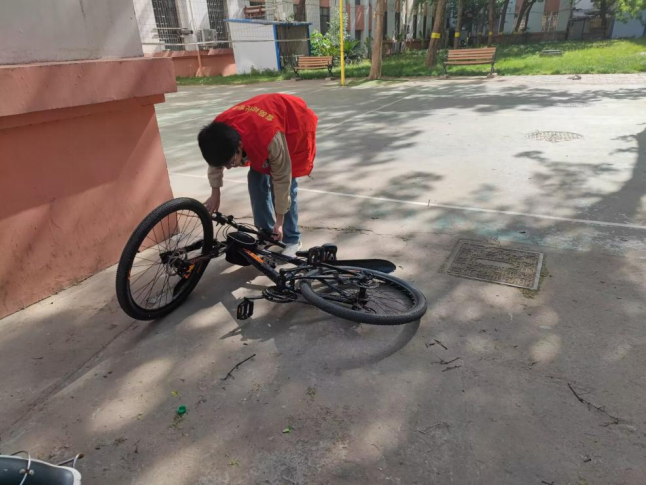 上午,志愿者们对校园内停放车辆进行规范摆放,志愿者们细心调整车头朝向使其保持一致,打造出了整洁有序的停车环境,并倡导同学们做文明的骑行者和停放者。同时对学校内教学楼卫生进行了全方位、无死角的清理,志愿者们各执其责,扫地、拖地、擦黑板、清洁讲台、清空抽屉垃圾等,一切都有条不紊地进行着,成功进一步营造干净、整洁、安全的校园环境。