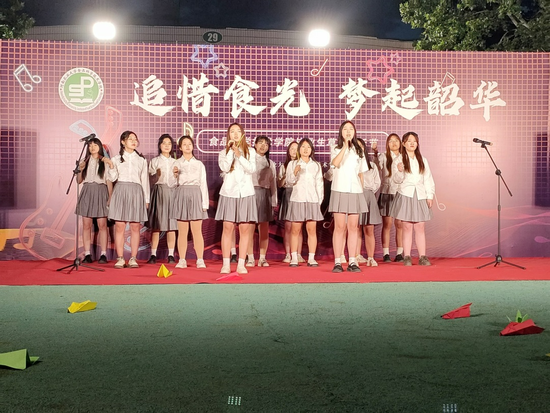 中场游戏互动过后,观众的情绪再一次被古风歌曲《一介书生》带回晚会中,吉他弹唱《七里香》和歌曲《你还怕大雨吗》带着同学们走进属于他们的青春;合唱《无与伦比的美丽》和《甜甜的》活泼的语调带动着现场的每一位观众,朗诵《在变老前远去》,展现了我校学子立志做有理想、敢担当、能吃苦、肯奋斗的新时代好青年的坚定决心;歌曲《达尔文》激励着每一位学子成为更好的自己;舞蹈《泰酷辣舞》再次燃翻全场。