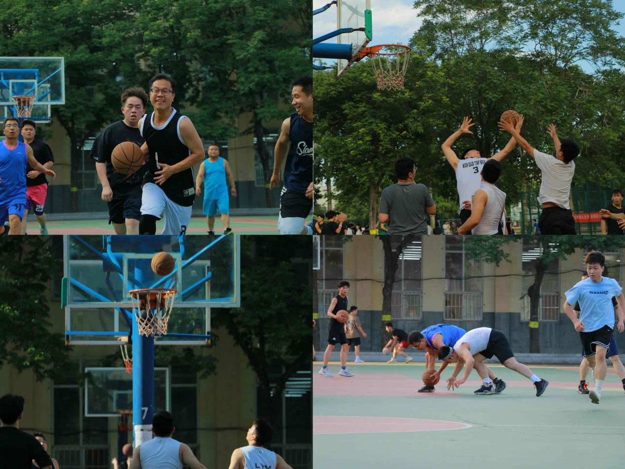 于文化路校区篮球场举办2023届“食韵华章、研梦起航”主题教职工与毕业生篮球赛。本次比赛由教职工代表队、研究生毕业生代表队两支队伍参加活动。