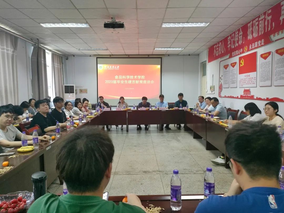 于文化路校区17号楼405召开毕业生感恩教育座谈会,院党委书记赵改名,院长黄现青,院党委副书记李荷蕉,副院长张剑、谢新华及教师代表出席会议,本科生、研究生毕业生代表参加会议。