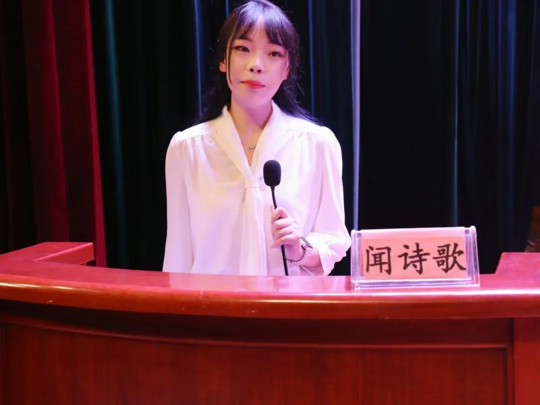 研究生新生代表闻诗歌结合自身的经历,讲述了自己与食品的缘分,并勉励同学们在探花