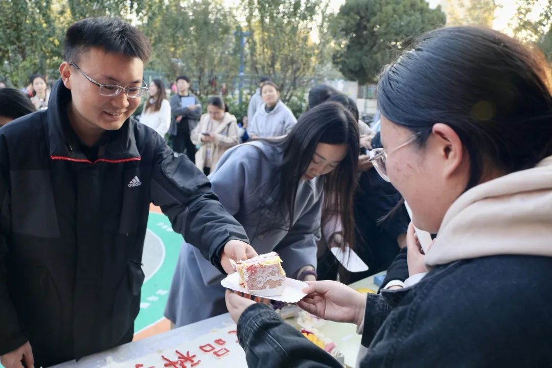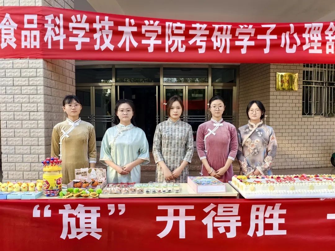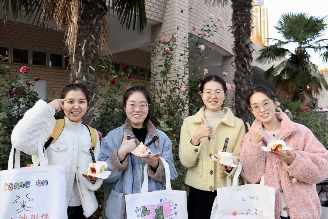 活动形式多样,意在为毕业生送温暖。活动现场准备了两米长的“定胜”糕,寓意一定胜利高中,让毕业生们品尝美味的蛋糕,并进行了丰富多彩的心理减压小游戏:“无敌幸运轮”“乘风破浪”“超越自我”“鱼跃龙门”“前程万里”“一举夺魁”,毕业生们通过挑战自我、轻松减压,舒缓紧张的心情;志愿者为毕业生送上考研上岸专属礼物-精美帆布包,帆布包上的图案是来自研究生和低年级同学亲手绘制,绘满了对毕业生的祝福;身穿旗袍的志愿者为毕业生送上学院精心准备的“旗开得胜”小礼物。