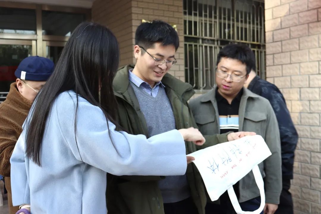 在文化路校区举办冬季送温暖暨考研学子心理舒缓趣味活动,为毕业生送上帆布包、寓意“加油鸭”的小黄鸭、寓意“稳中”的香囊等小礼物。探花