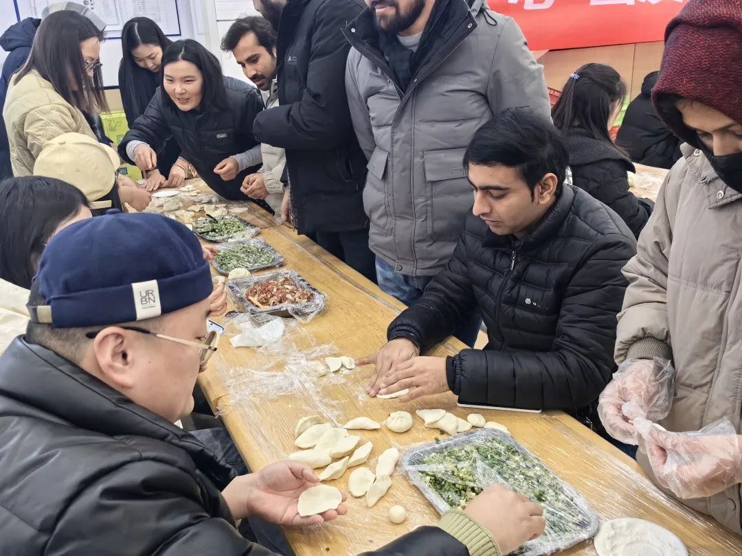 在制作的现场,本科生、研究生和留学生纷纷展示自己的高超技巧,传统与创新齐飞,鲜艳共素朴一色,将饺子大赛推上高潮!