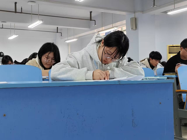 在考试期间,监考员们坚守岗位、尽职尽责,努力为考生创造严明的考试纪律与考场秩序,他们贴心地提醒同学们不忘初心,诚信考试,凭实力展现自我风采。同学们自觉遵守考场纪律,服从监考员的安排,时而奋笔疾书,时而凝心思考,专心致志,认真作答。希望同学们能够通过此次考试端正学习态度,认真总结经验,查漏补缺,为接下来的学习做好充分的准备,并学会感恩,感谢每一位辛勤付出、认真负责的老师。
