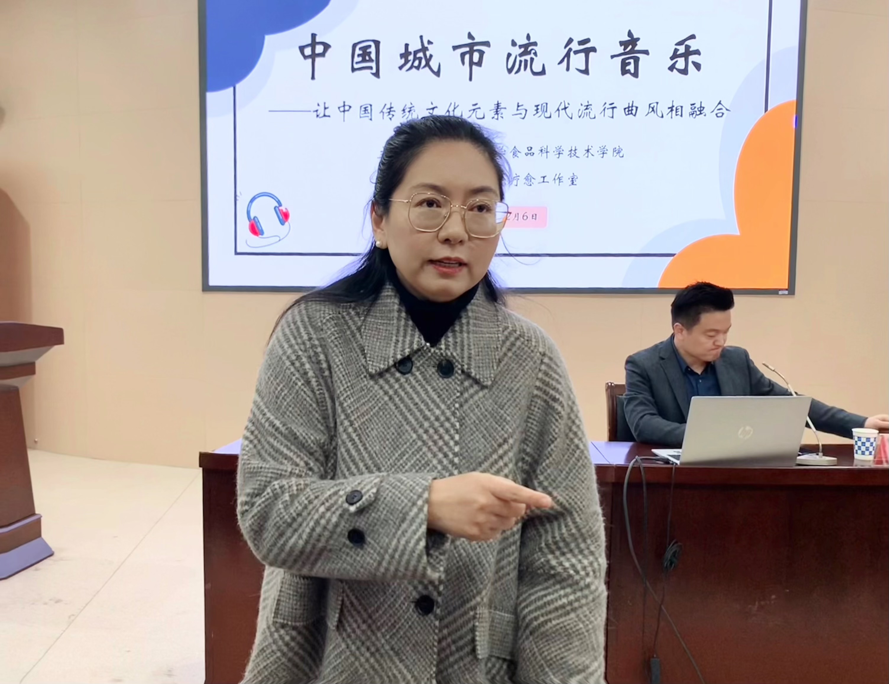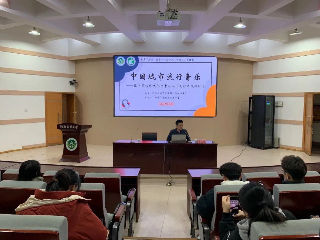 于文化路校区三百人报告厅举行“中国城市流行音乐”讲座,此次会议由“知音”音乐疗愈工作室承办,河南职业技术学院教授王志鹏担任主讲,博士辅导员补彤出席会议,探花