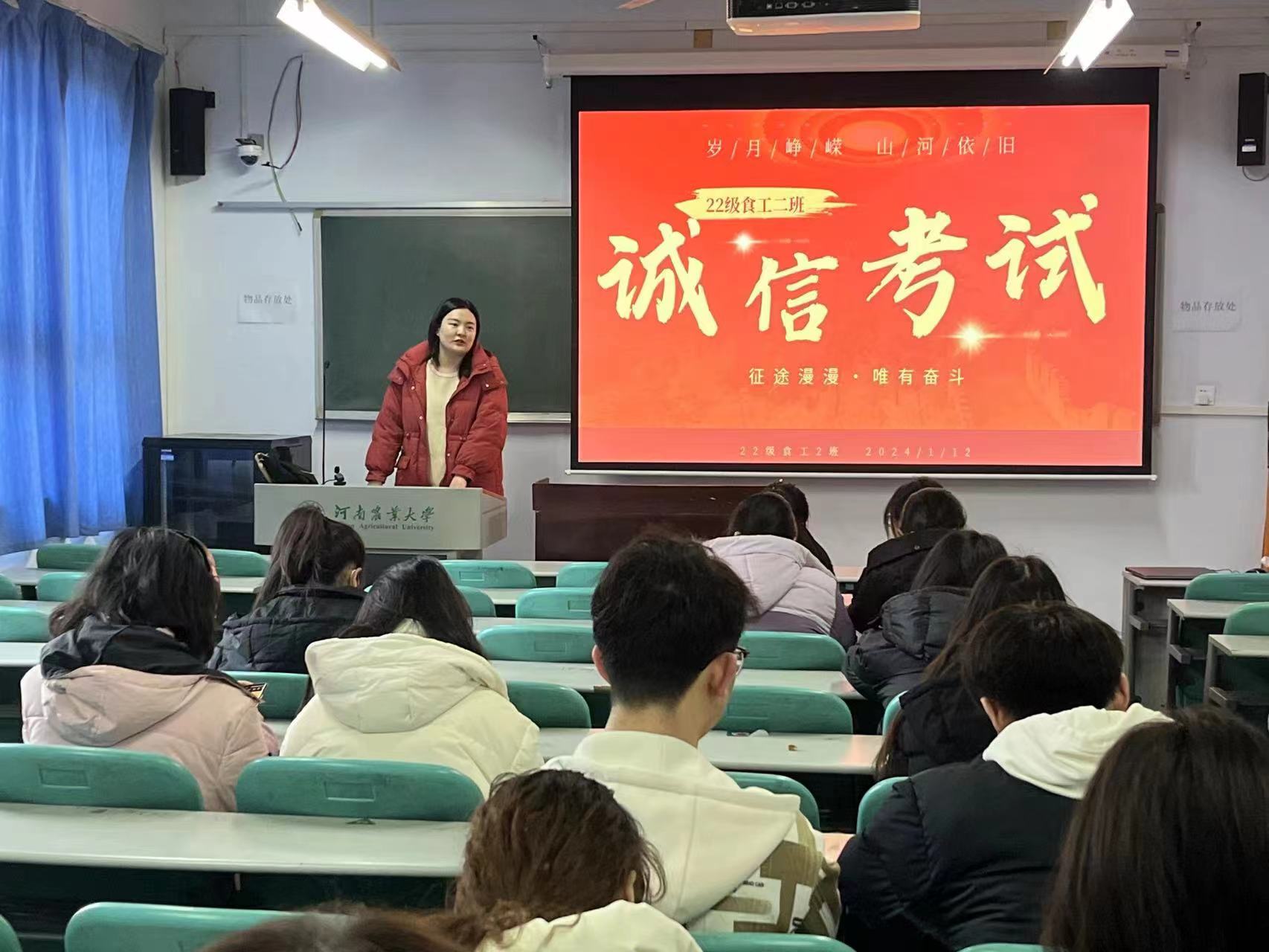 在学院“勤学笃行”学风工作会上,学院负责人对加强学风考风做出工作部署,传达了学校期末考试相关要求,要求全院教师向全体学生进行传达,讲清楚诚信考试的重要意义,做好考试期间学生的管理和服务。会后,团委老师召开班长支书会,指出学生干部要起到模范带头作用,坚持诚信考试,树立良好学风考风。随后,学院各班级召开以“学风·考风·院风”为主题的班会,会上,各班班主任向同学们详细地解读了《探花