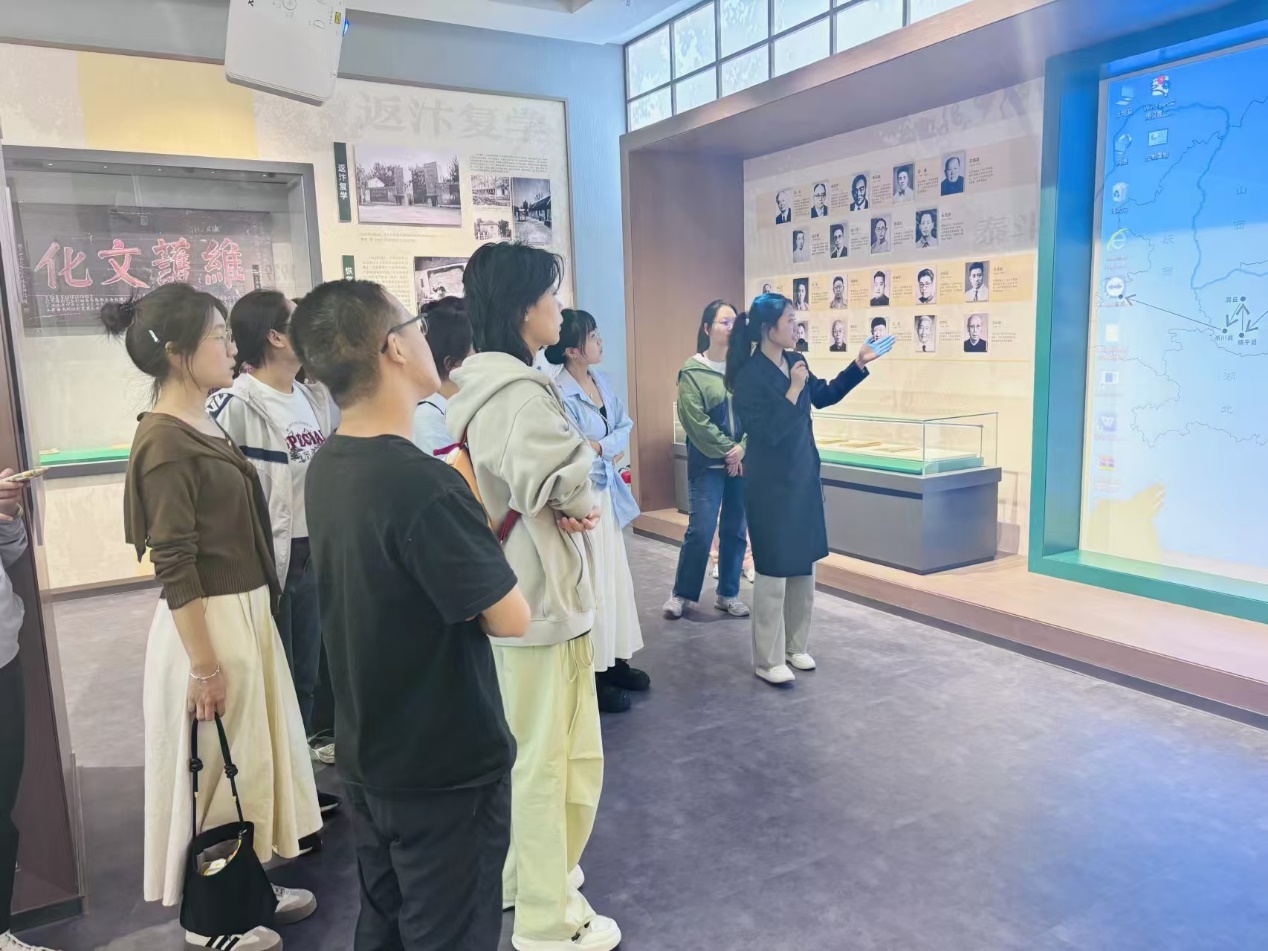 在解说员的引导下,同学们进入到校史展览馆内的各个展区,逐步了解到探花