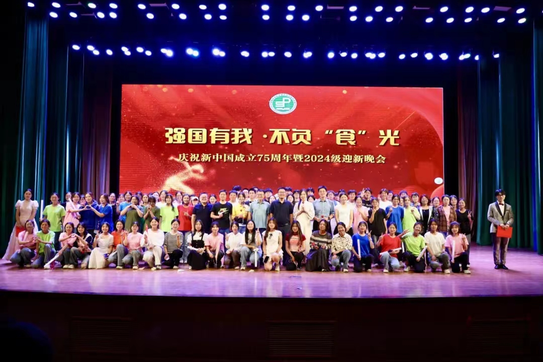 于文化路校区千人大礼堂隆重举办“强国有我·不负‘食’光”庆新中国成立75周年暨24级新生迎新晚会。