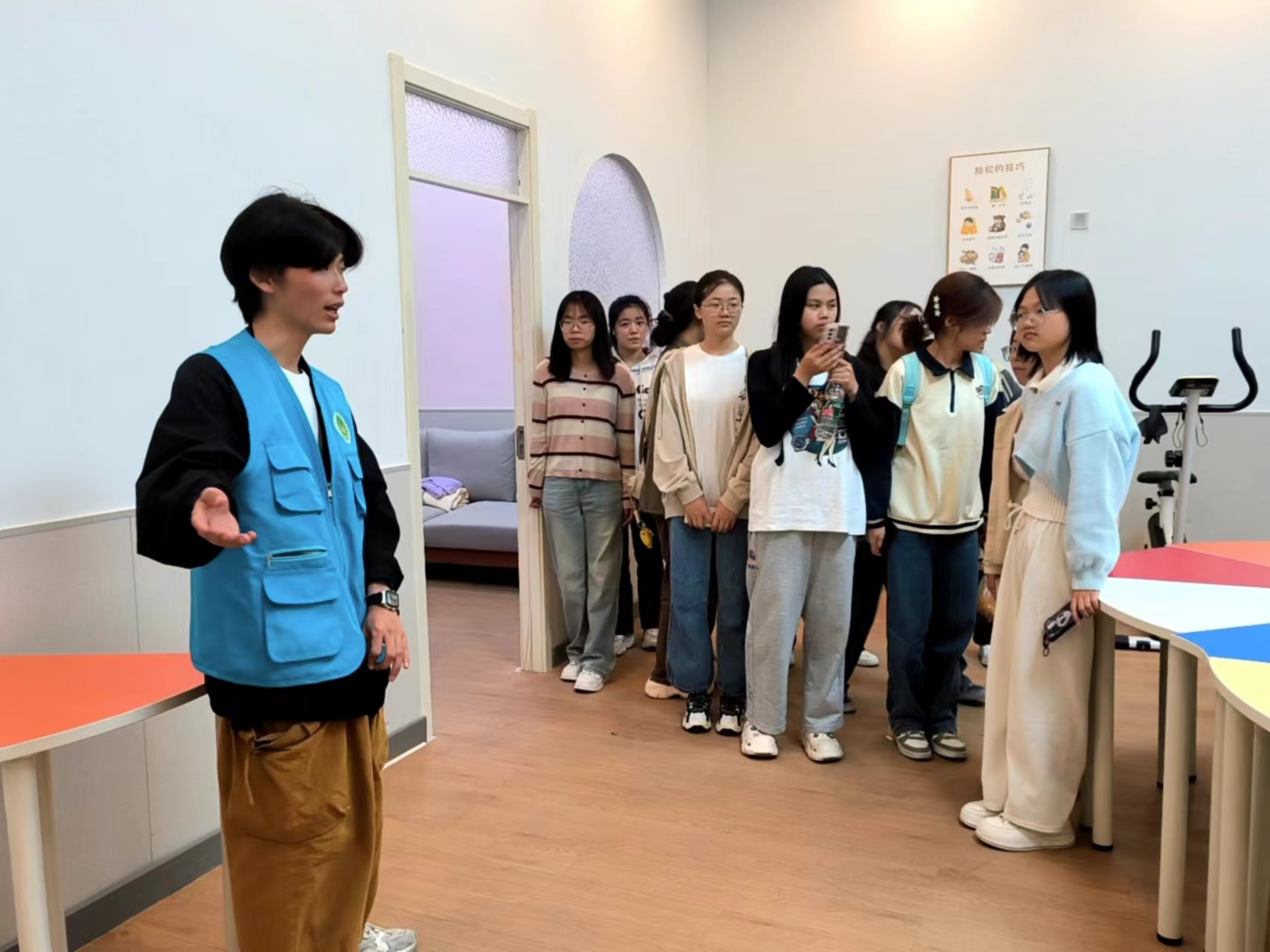 接着,在讲解员的带领下,新生们逐一参观了各个功能区域,包括团体活动室、心理辅导室、心理沙盘室、音乐放松室等,了解了每个区域的作用和提供的服务。参观过程中,新生们积极参与,亲身体验了各种心理设备,通过此次体验,他们深刻感受到了心理健康中心设施的多样性。